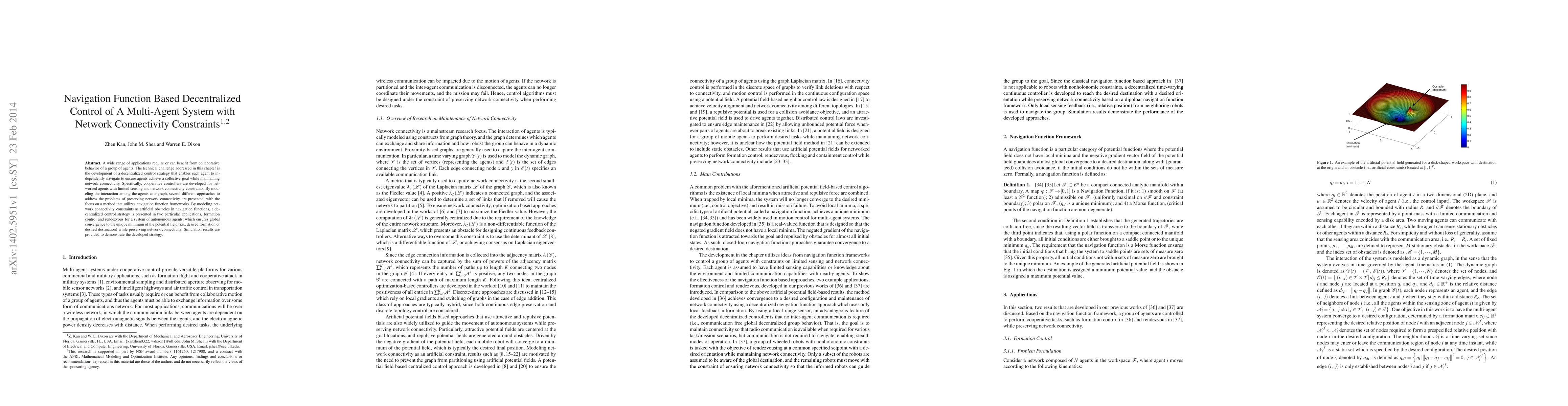 A wide range of applications require or can benefit from collaborative behavior of a group of agents. The technical challenge addressed in this chapter is the development of a decentralized control strategy that enables each agent to independently navigate to ensure agents achieve a collective goal while maintaining network connectivity. Specifically, cooperative controllers are developed for networked agents with limited sensing and network connectivity constraints. By modeling the interaction among the agents as a graph, several different approaches to address the problems of preserving network connectivity are presented, with the focus on a method that utilizes navigation function frameworks. By modeling network connectivity constraints as artificial obstacles in navigation functions, a decentralized control strategy is presented in two particular applications, formation control and rendezvous for a system of autonomous agents, which ensures global convergence to the unique minimum of the potential field (i.e., desired formation or desired destination) while preserving network connectivity. Simulation results are provided to demonstrate the developed strategy.