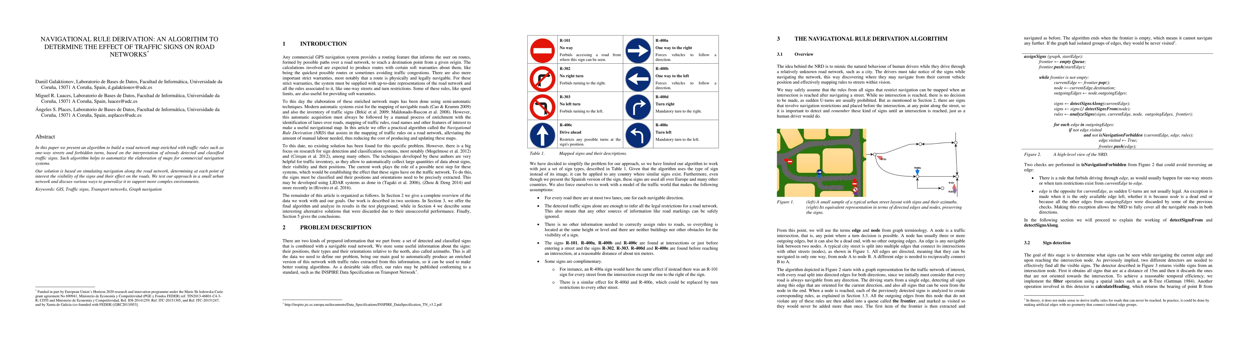 This paper introduces an algorithm to automatically enrich road network maps with traffic rules from detected signs, aiding navigation systems. The algorithm simulates navigation to determine sign visibility and effects, tested in a small urban area with potential for broader application.