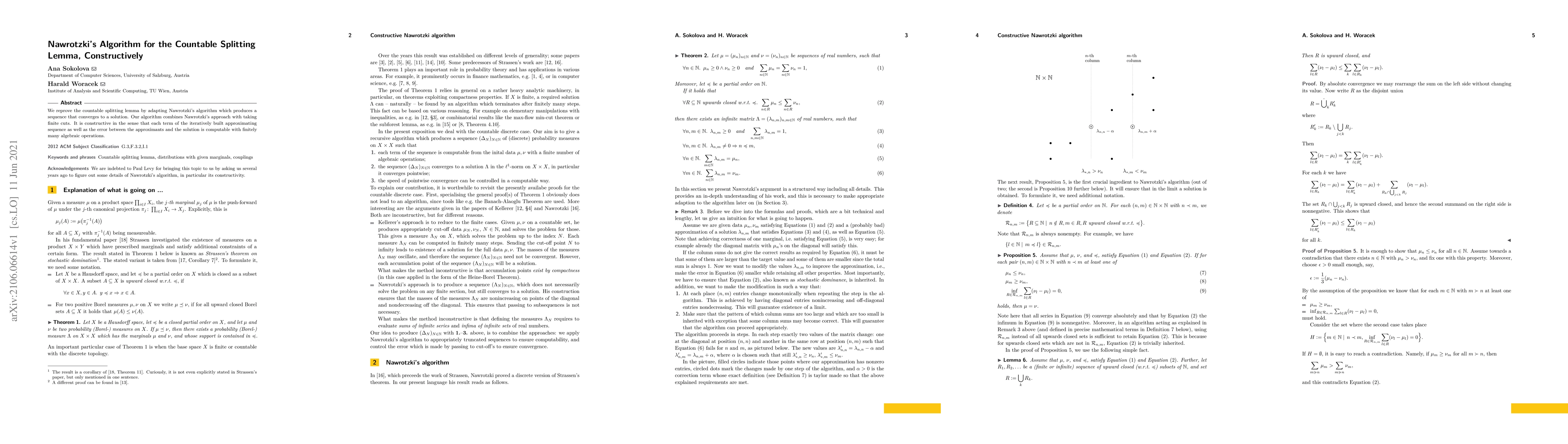 We reprove the countable splitting lemma by adapting Nawrotzki's algorithm which produces a sequence that converges to a solution. Our algorithm combines Nawrotzki's approach with taking finite cuts. It is constructive in the sense that each term of the iteratively built approximating sequence as well as the error between the approximants and the solution is computable with finitely many algebraic operations.