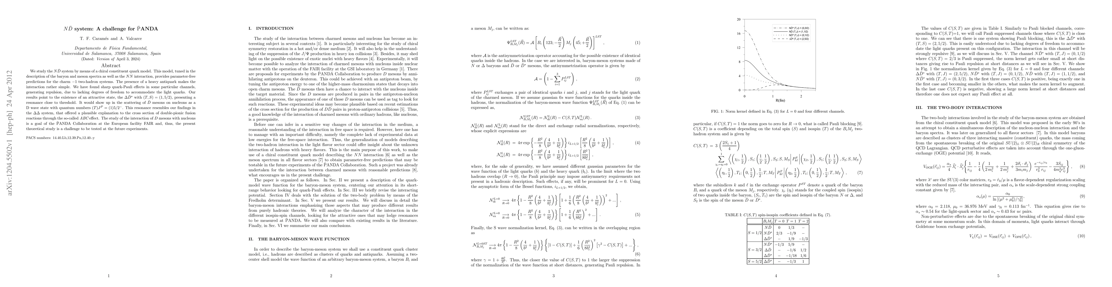 We study the $N \bar D$ system by means of a chiral constituent quark model. This model, tuned in the description of the baryon and meson spectra as well as the $NN$ interaction, provides parameter-free predictions for the charm -1 two-hadron systems. The presence of a heavy antiquark makes the interaction rather simple. We have found sharp quark-Pauli effects in some particular channels, generating repulsion, due to lacking degrees of freedom to accommodate the light quarks. Our results point to the existence of an attractive state, the $\Delta \bar D^*$ with $(T,S)=(1,5/2)$, presenting a resonance close to threshold. It would show up in the scattering of $\bar D$ mesons on nucleons as a D wave state with quantum numbers $(T)J^P=(1)5/2^-$. This resonance resembles our findings in the $\Delta\Delta$ system, that offered a plausible explanation to the cross section of double-pionic fusion reactions through the so-called {\it ABC} effect. The study of the interaction of $D$ mesons with nucleons is a goal of the $\bar {\rm P}$ANDA Collaboration at the European facility FAIR and, thus, the present theoretical study is a challenge to be tested at the future experiments.