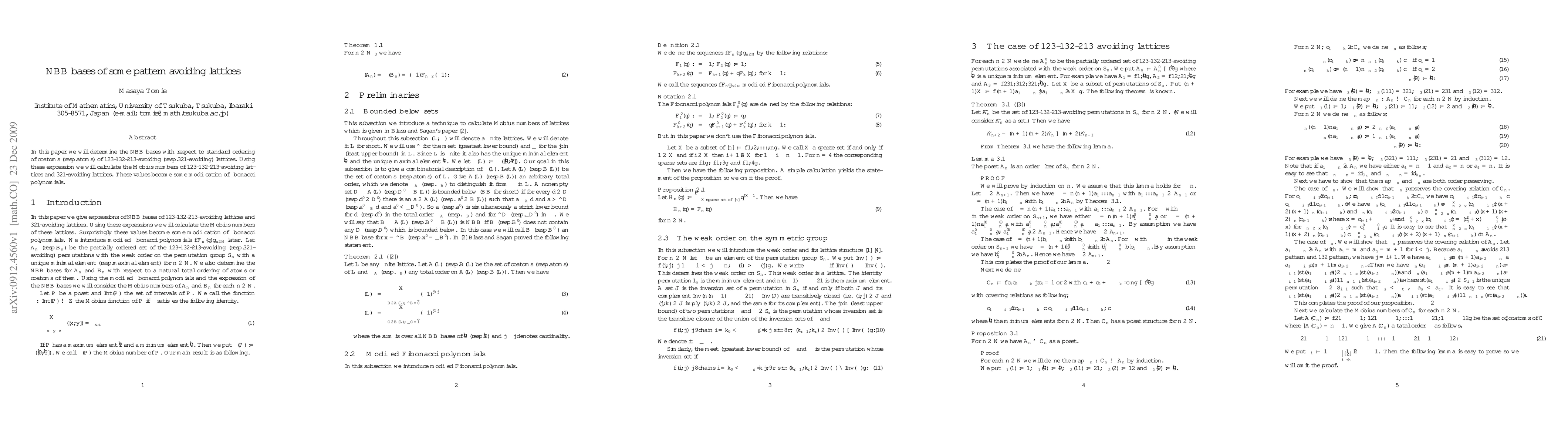 In this paper we will determine the NBB bases with respect to standard ordering of coatoms (resp.atoms) of 123-132-213-avoiding (resp.321-avoiding) lattices. Using these expression we will calculate the M\"obius numbers of 123-132-213-avoiding lattices and 321-avoiding lattices. These values become some modification of fibonacci polynomials.