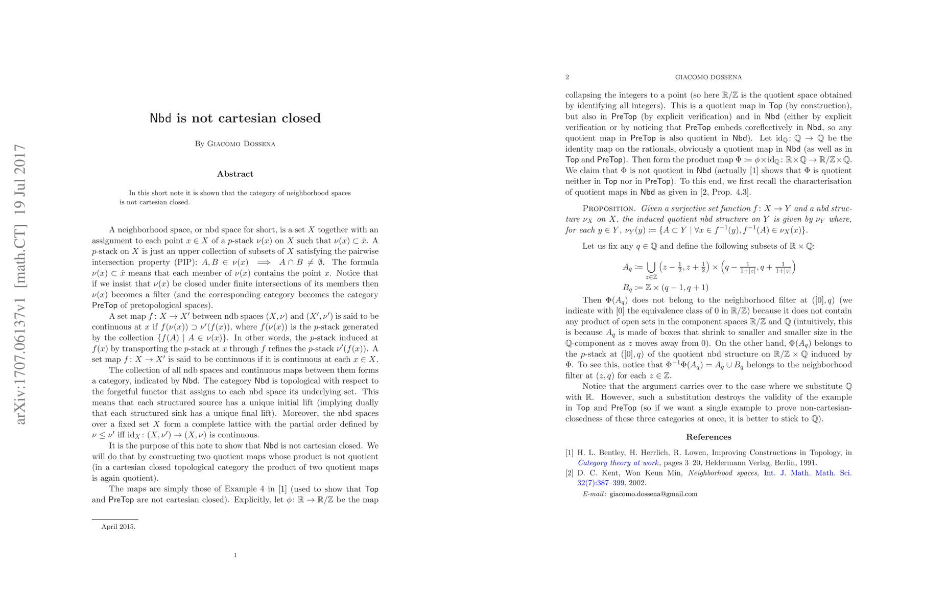 A new example is presented that shows Nbd is not cartesian closed, using quotient maps and the collapsing map on R/Z.