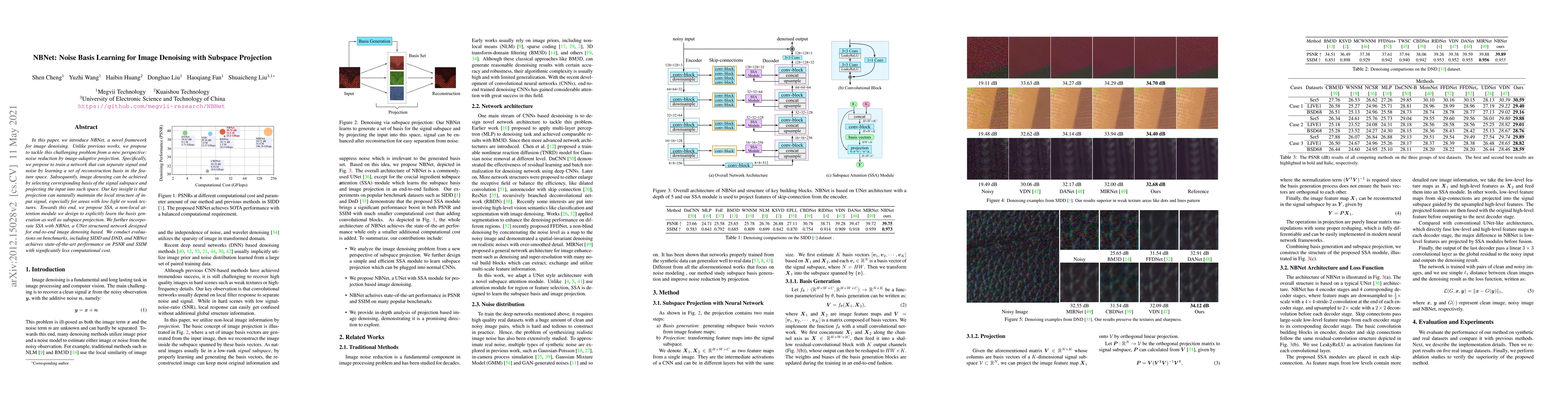This paper introduces NBNet, a new framework for image denoising that leverages noise-adaptive projection to effectively reduce noise while preserving signal structure. It achieves state-of-the-art performance with reduced computational cost.