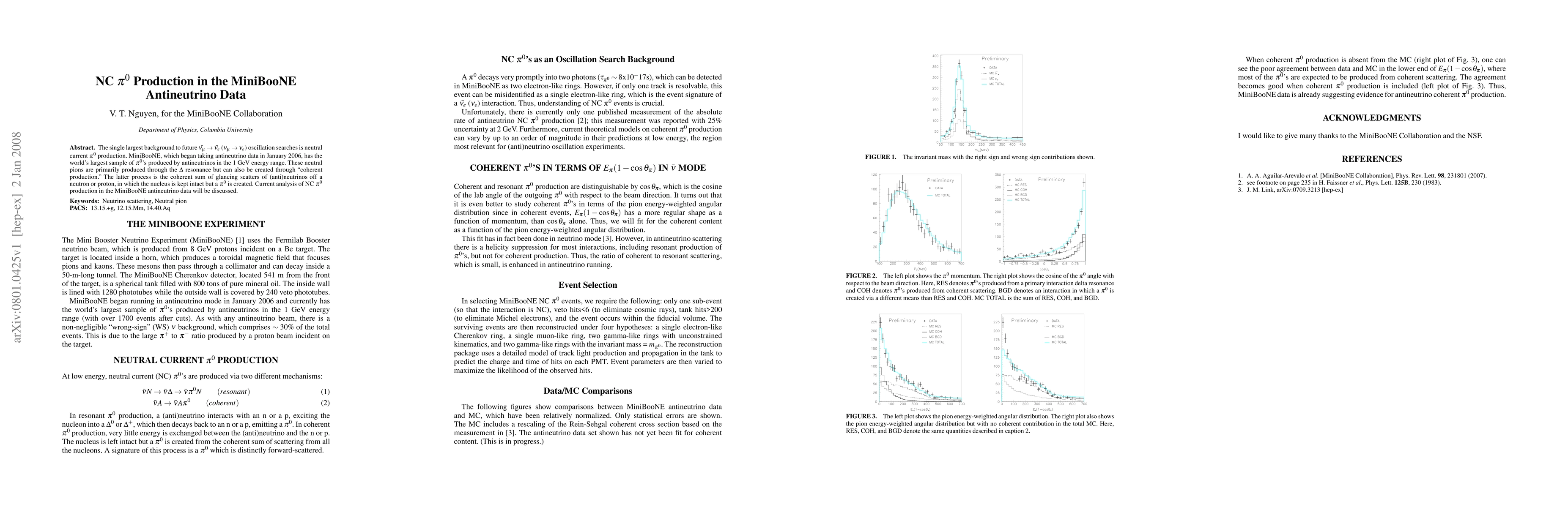 This paper discusses the analysis of neutral current pi0 production in the MiniBooNE antineutrino data, which is the largest background for future numu to nue oscillation searches. The study focuses on the production mechanisms, primarily through delta resonance and coherent production in the 1 GeV energy range.
