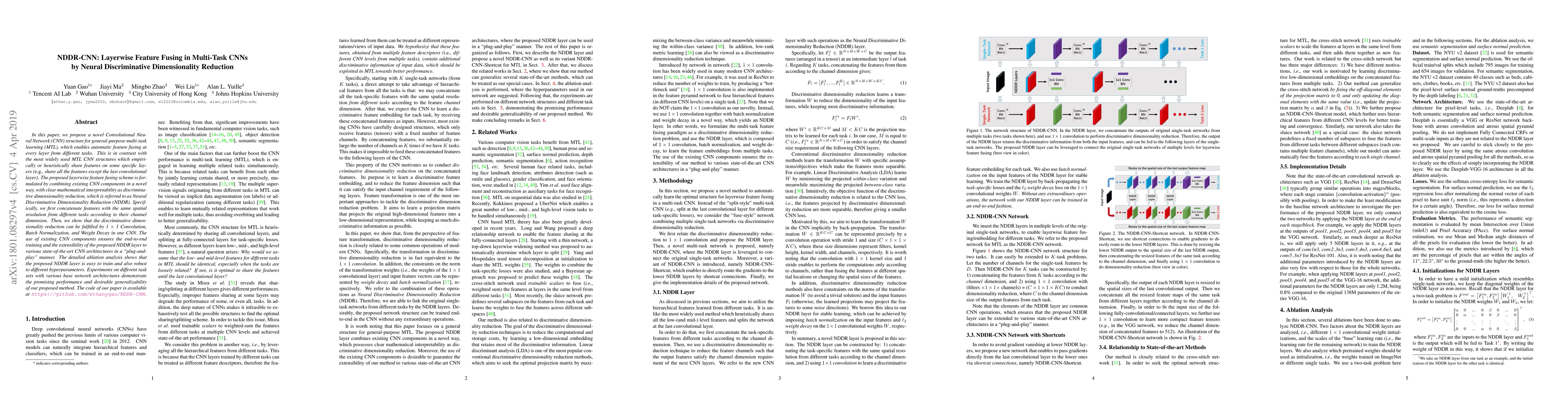 The paper proposes NDDR-CNN, a novel multi-task learning structure that automates feature fusion at every layer via discriminative dimensionality reduction, combining 1x1 Convolution, Batch Normalization, and Weight Decay. This method enables flexible integration with various CNN architectures and demonstrates robust performance across different tasks.
