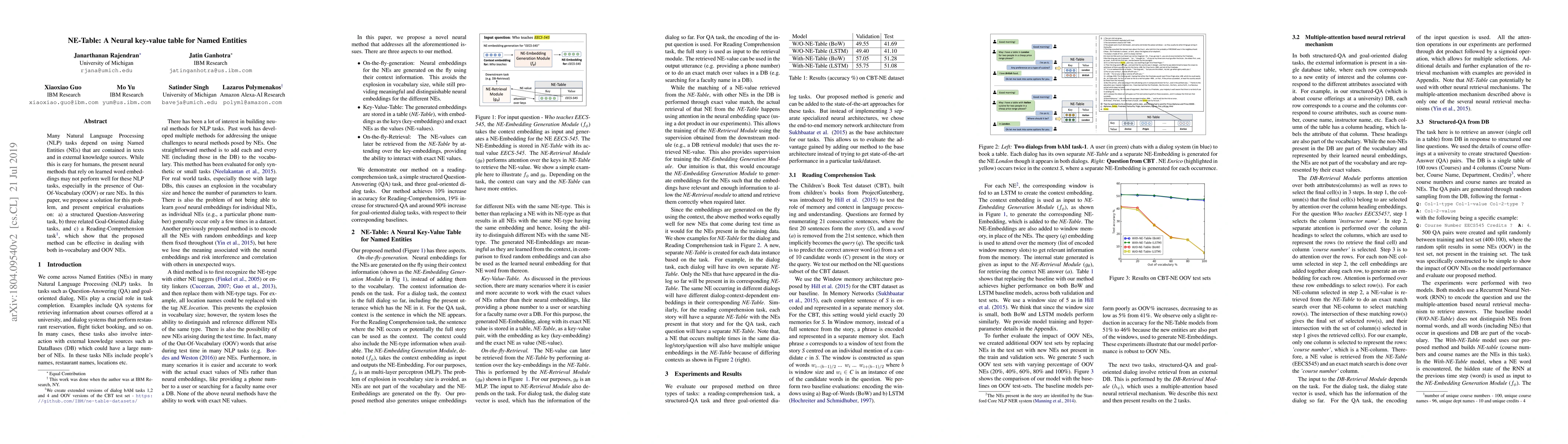 Many Natural Language Processing (NLP) tasks depend on using Named Entities (NEs) that are contained in texts and in external knowledge sources. While this is easy for humans, the present neural methods that rely on learned word embeddings may not perform well for these NLP tasks, especially in the presence of Out-Of-Vocabulary (OOV) or rare NEs. In this paper, we propose a solution for this problem, and present empirical evaluations on: a) a structured Question-Answering task, b) three related Goal-Oriented dialog tasks, and c) a Reading-Comprehension task, which show that the proposed method can be effective in dealing with both in-vocabulary and OOV NEs. We create extended versions of dialog bAbI tasks 1,2 and 4 and OOV versions of the CBT test set available at - https://github.com/IBM/ne-table-datasets.