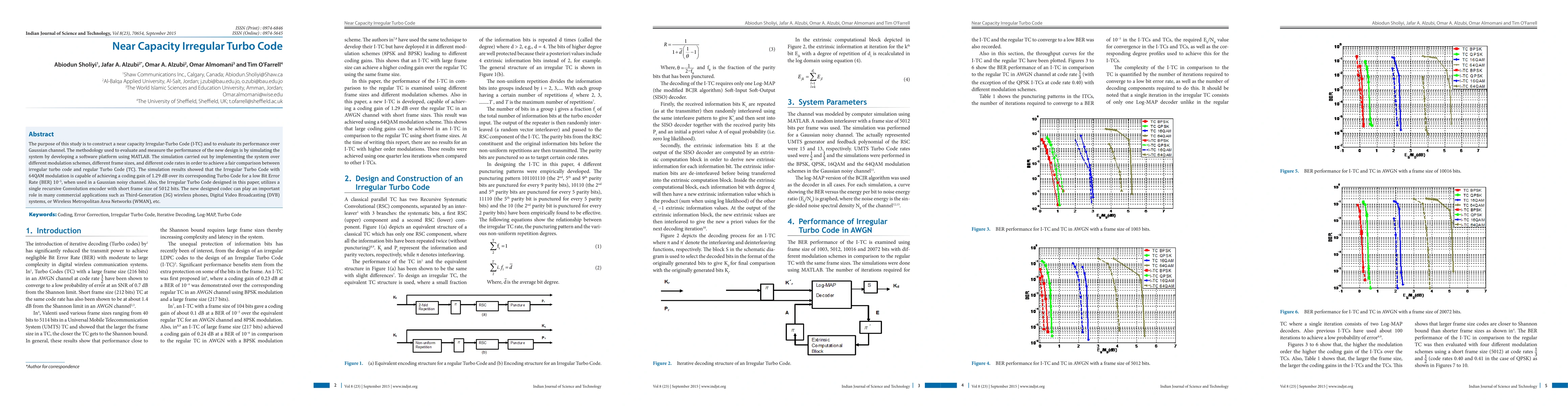 The purpose of this study is to construct a near capacity Irregular Turbo Code and to evaluate its performance over Gaussian channel. The methodology used to evaluate and measure the performance of the new design is by simulating the system by developing a software platform using Matlab. The simulation carried out by implementing the system over different modulation schemes, different frame sizes, and different code rates in order to achieve a fair comparison between irregular turbo code and regular Turbo Code. The simulation results showed that the Irregular Turbo Code with 64QAM modulation is capable of achieving a coding gain of 1.29 dB over its corresponding Turbo Code for a low Bit Error Rate 10 to 5, when used in a Gaussian noisy channel. Also, the Irregular Turbo Code designed in this paper, utilizes a single recursive Convolution encoder with short frame size of 5012 bits. The new designed codec can play an important role in many commercial applications such as Third-Generation wireless phones, Digital Video Broadcasting systems, or Wireless Metropolitan Area Networks, etc.