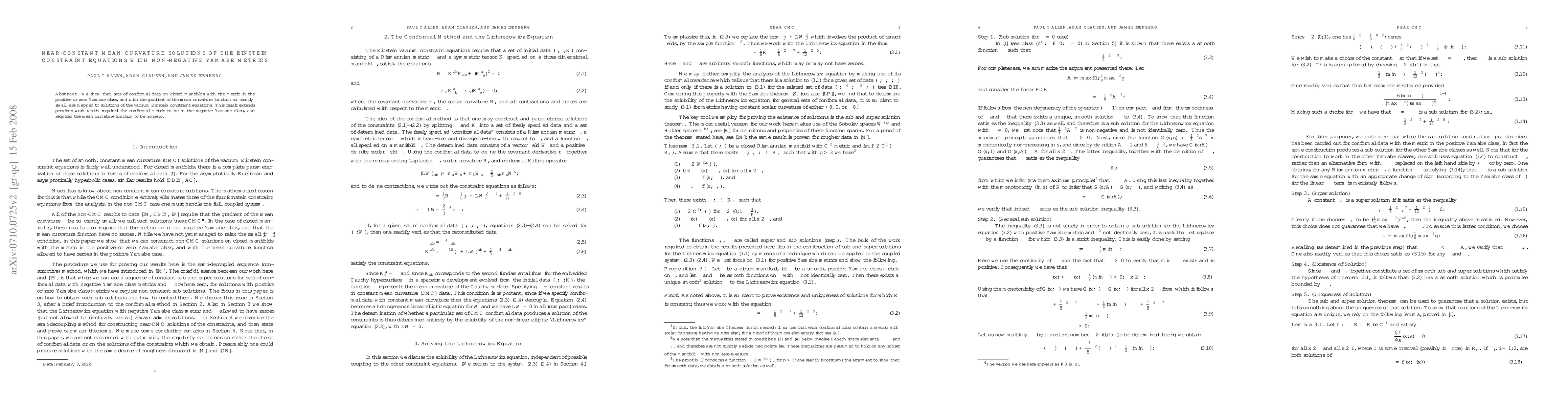 This paper demonstrates that conformal data on closed manifolds with non-negative Yamabe metrics and small gradient mean curvature functions yield solutions to the Einstein constraint equations, extending prior results that applied to the negative Yamabe class and nonzero mean curvature.