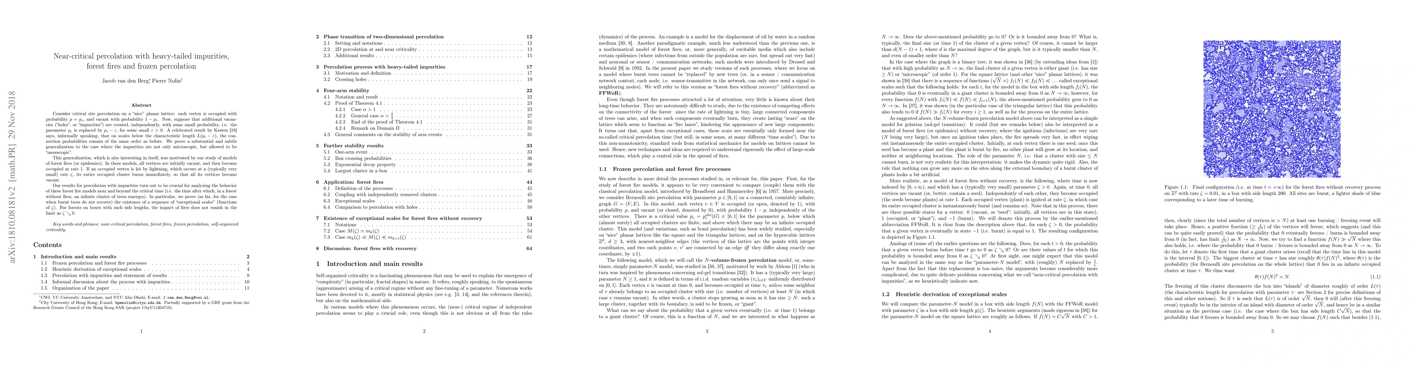 This paper studies critical site percolation on a planar lattice with additional mesoscopic impurities, extending Kesten's result. It also analyzes forest fire models where clusters burn upon lightning strikes, proving the existence of exceptional scales where fire impact remains significant as the strike rate diminishes.