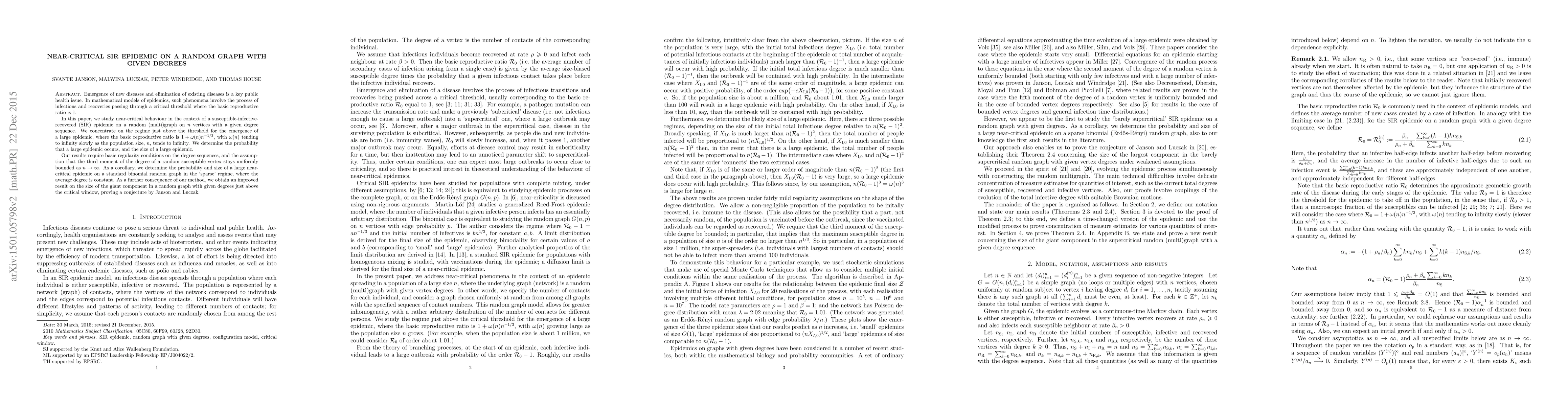 This paper investigates near-critical behavior in SIR epidemics on random graphs with given degrees, finding that a large epidemic occurs with high probability just above the critical threshold. The results provide insights into the emergence of new diseases and elimination of existing ones.