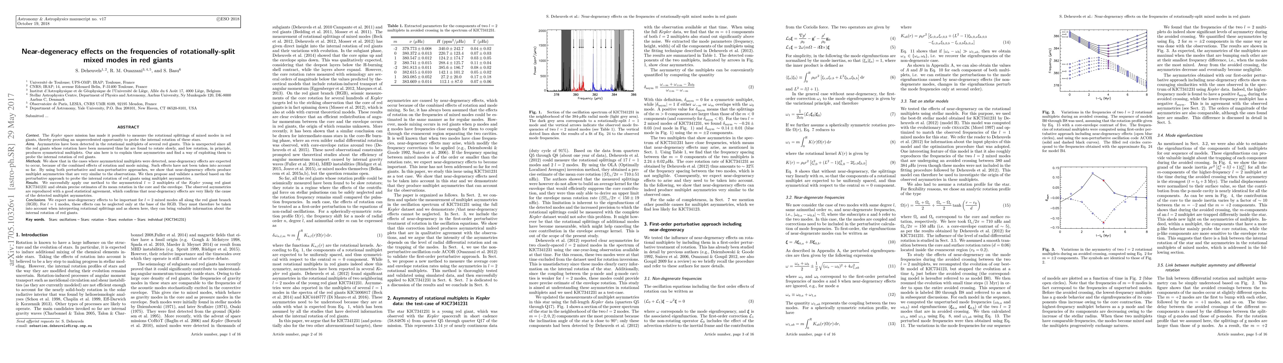 The Kepler space mission has made it possible to measure the rotational splittings of mixed modes in red giants, thereby providing an unprecedented opportunity to probe the internal rotation of these stars. Asymmetries have been detected in the rotational multiplets of several red giants. This is unexpected since all the red giants whose rotation have been measured thus far are found to rotate slowly, and low rotation, in principle, produces symmetrical multiplets. Our aim here is to explain these asymmetries and find a way of exploiting them to probe the internal rotation of red giants. We show that in the cases where asymmetrical multiplets were detected, near-degeneracy effects are expected to occur, because of the combined effects of rotation and mode mixing. Such effects have not been taken into account so far. By using both perturbative and non-perturbative approaches, we show that near-degeneracy effects produce multiplet asymmetries that are very similar to the observations. We then propose and validate a method based on the perturbative approach to probe the internal rotation of red giants using multiplet asymmetries. We successfully apply our method to the asymmetrical $l=2$ multiplets of the Kepler young red giant KIC7341231 and obtain precise estimates of its mean rotation in the core and the envelope. The observed asymmetries are reproduced with a good statistical agreement, which confirms that near-degeneracy effects are very likely the cause of the detected multiplet asymmetries. We expect near-degeneracy effects to be important for $l=2$ mixed modes all along the red giant branch (RGB). For $l=1$ modes, these effects can be neglected only at the base of the RGB. They must therefore be taken into account when interpreting rotational splittings and as shown here, they can bring valuable information about the internal rotation of red giants.