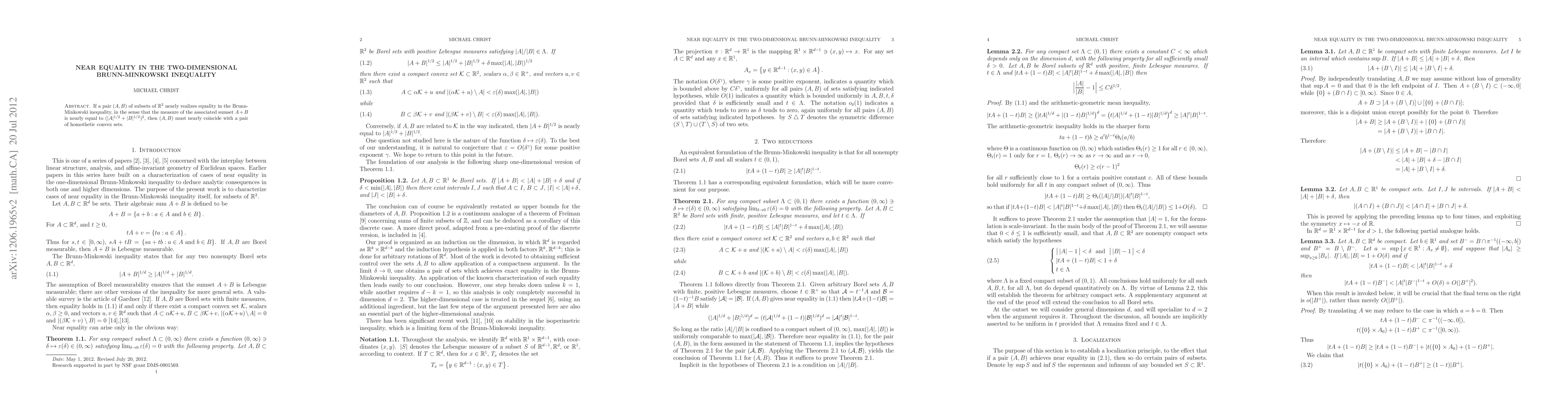 This paper demonstrates that if two-dimensional subsets nearly attain equality in the Brunn-Minkowski inequality, they must nearly coincide with homothetic convex sets. The proof utilizes a continuum extension of Freiman's theorem on integer sets with small sumsets.