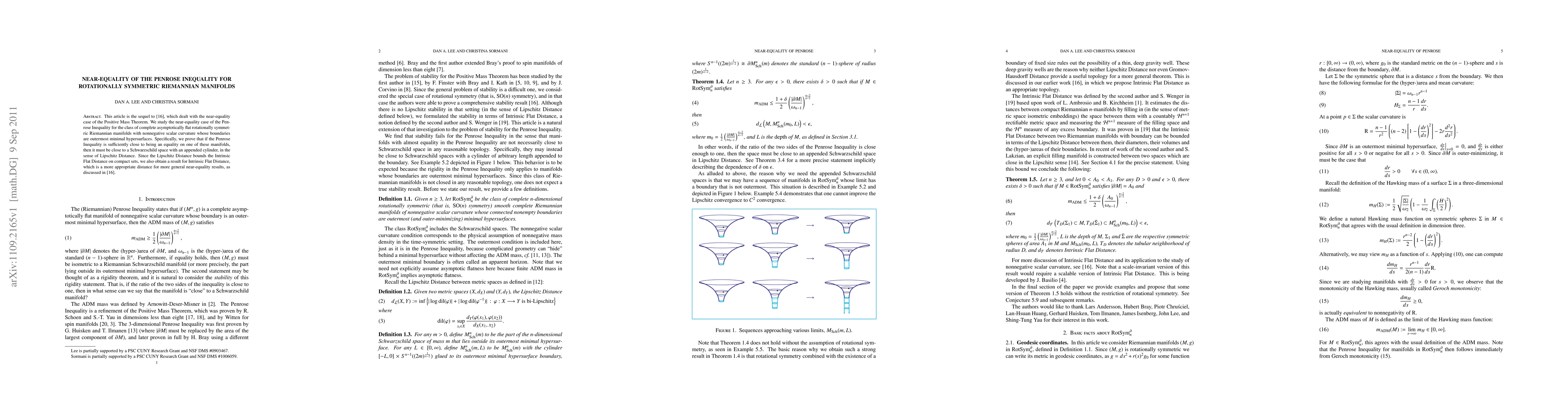 This article is the sequel to our previous paper [LS] dealing with the near-equality case of the Positive Mass Theorem. We study the near-equality case of the Penrose Inequality for the class of complete asymptotically flat rotationally symmetric Riemannian manifolds with nonnegative scalar curvature whose boundaries are outermost minimal hypersurfaces. Specifically, we prove that if the Penrose Inequality is sufficiently close to being an equality on one of these manifolds, then it must be close to a Schwarzschild space with an appended cylinder, in the sense of Lipschitz Distance. Since the Lipschitz Distance bounds the Intrinsic Flat Distance on compact sets, we also obtain a result for Intrinsic Flat Distance, which is a more appropriate distance for more general near-equality results, as discussed in [LS]