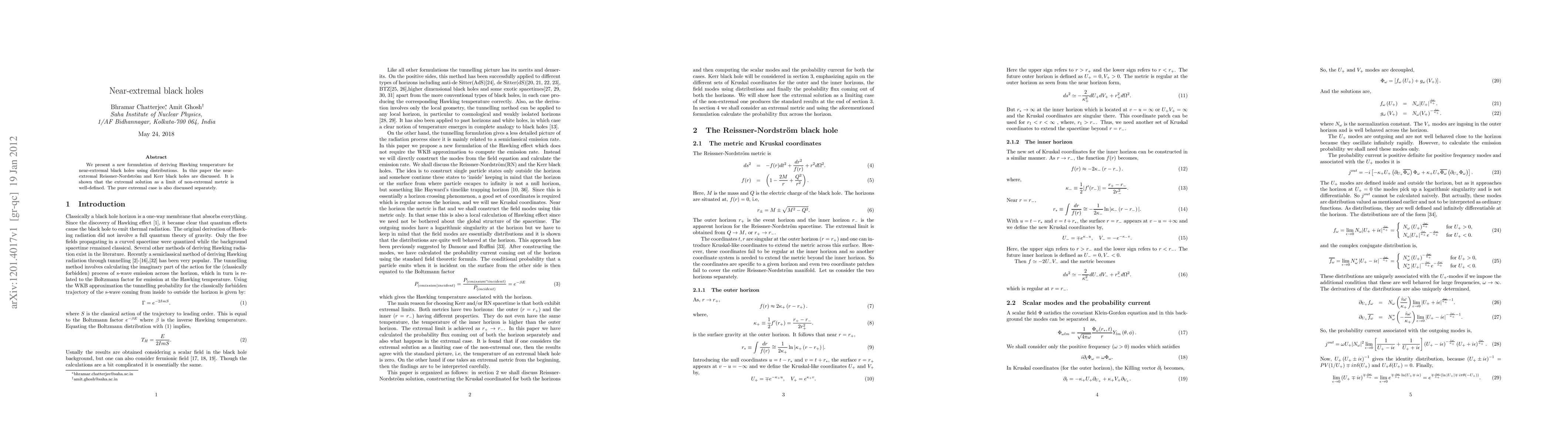 This paper introduces a new method to derive the Hawking temperature for near-extremal Reissner-Nordstrom and Kerr black holes using distribution theory. It demonstrates that the extremal limit of these metrics is well-defined and separately examines the pure extremal case.