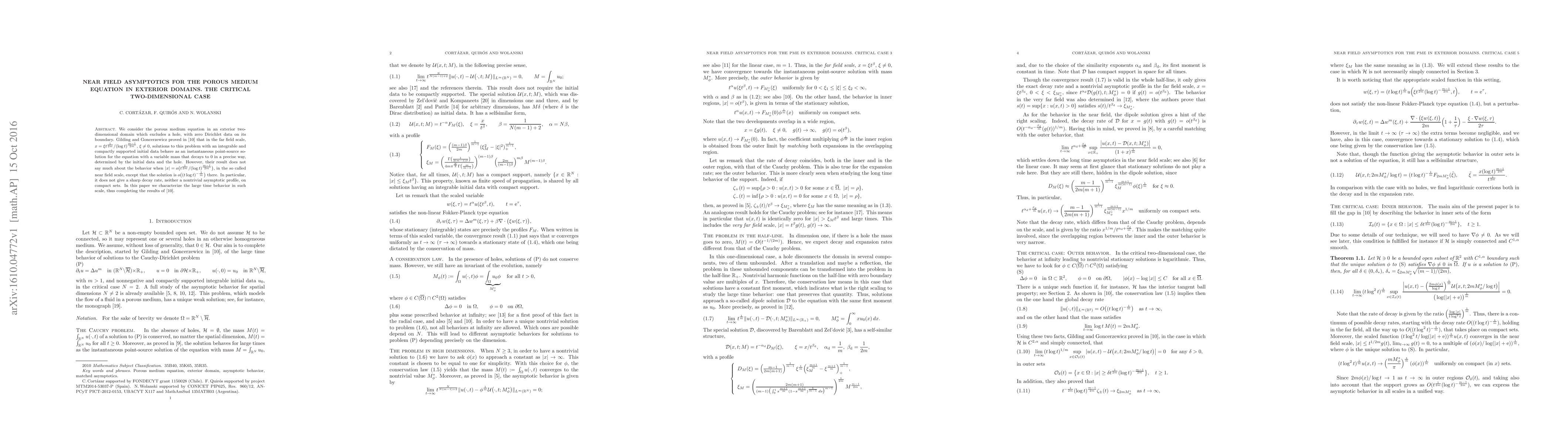 We consider the porous medium equation in an exterior two-dimensional domain which excludes a hole, with zero Dirichlet data on its boundary. Gilding and Goncerzewicz proved in [Gilding-Goncerzewicz-2007] that in the far field scale, $x=\xi t^{\frac1{2m}}/(\log t)^{\frac{m-1}{2m}}$, $\xi\ne 0$, solutions to this problem with an integrable and compactly supported initial data behave as an instantaneous point-source solution for the equation with a variable mass that decays to 0 in a precise way, determined by the initial data and the hole. However, their result does not say much about the behavior when $|x|=o\big(t^{\frac1{2m}}/(\log t)^{\frac{m-1}{2m}}\big)$, in the so called near field scale, except that the solution is $o\big((t\log t)^{-\frac1m}\big)$ there. In particular, it does not give a sharp decay rate, neither a nontrivial asymptotic profile, on compact sets. In this paper we characterize the large time behavior in such scale, thus completing the results of [Gilding-Goncerzewicz-2007].