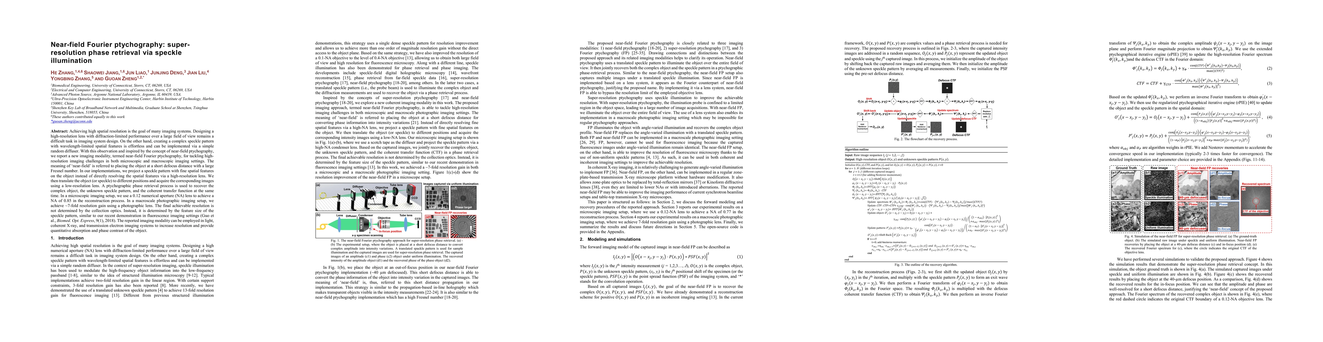 Near-field Fourier ptychography leverages a speckle pattern and ptychographic phase retrieval to achieve super-resolution imaging, overcoming the limitations of traditional high-resolution lenses. This method enables high-resolution imaging in both microscopic and macroscopic settings by determining resolution based on the speckle pattern's feature size.