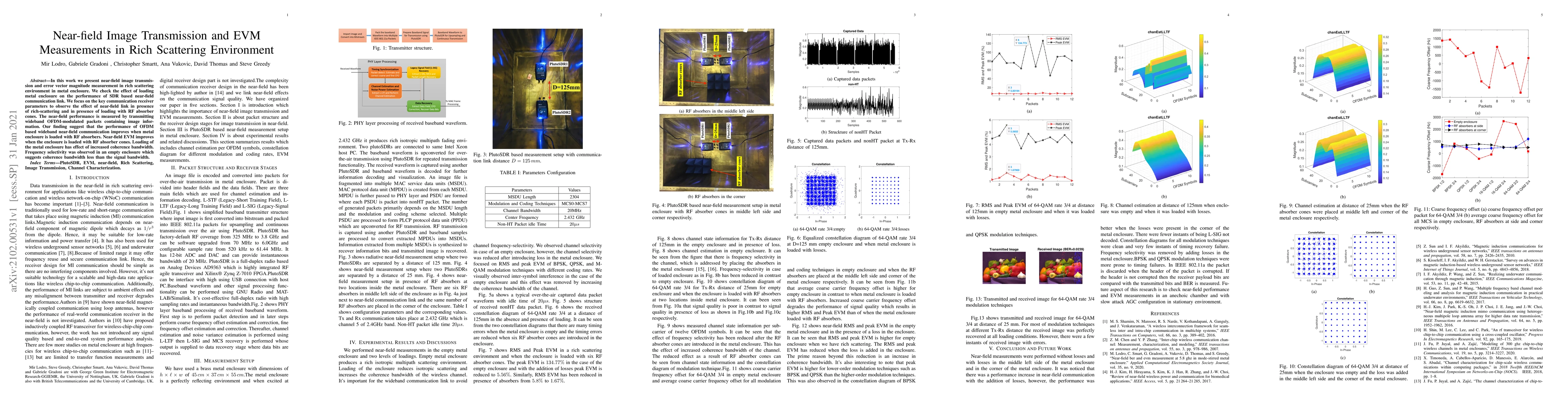 This study investigates near-field image transmission and error vector magnitude (EVM) in a rich scattering environment within a metal enclosure. The research finds that loading the metal enclosure with RF absorber cones enhances the performance of OFDM-based wideband near-field communication, improving near-field EVM and coherence bandwidth.