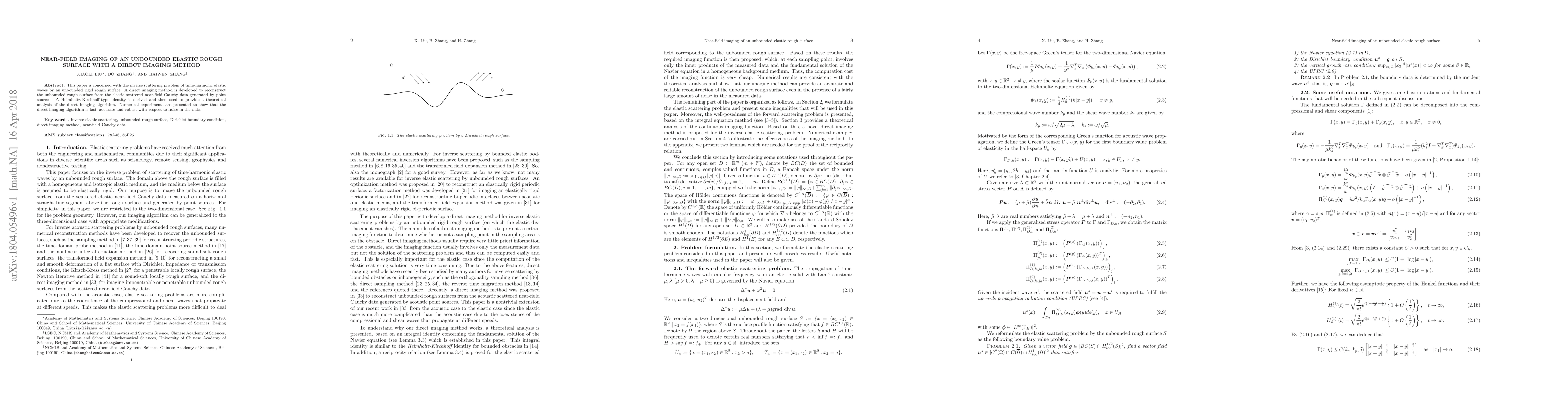 This paper develops a direct imaging method to reconstruct an unbounded elastic rough surface from near-field Cauchy data using a Helmholtz-Kirchhoff-type identity, demonstrating its fast, accurate, and noise-resistant performance through numerical experiments.