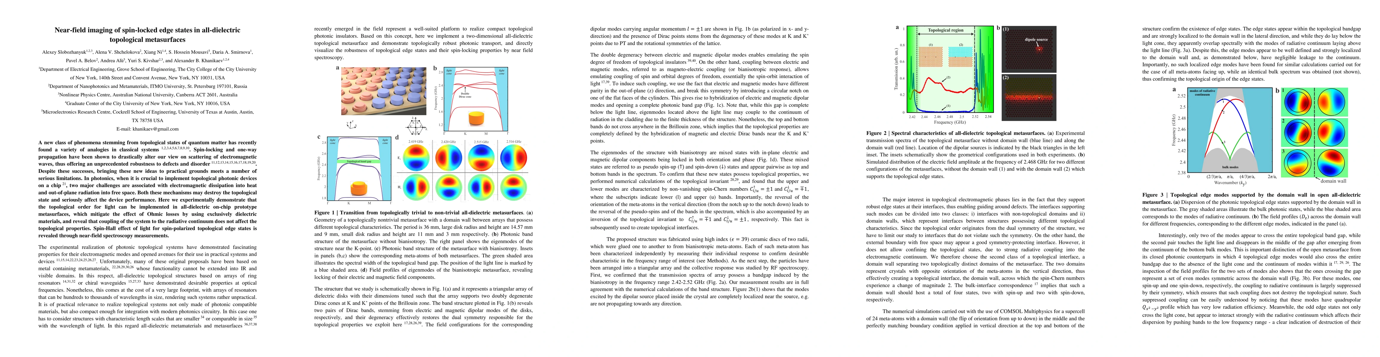 This paper demonstrates the implementation of topological photonic devices using all-dielectric metasurfaces, showing that these materials can maintain topological order despite electromagnetic dissipation and out-of-plane radiation, and reveals the Spin-Hall effect of light through near-field spectroscopy.
