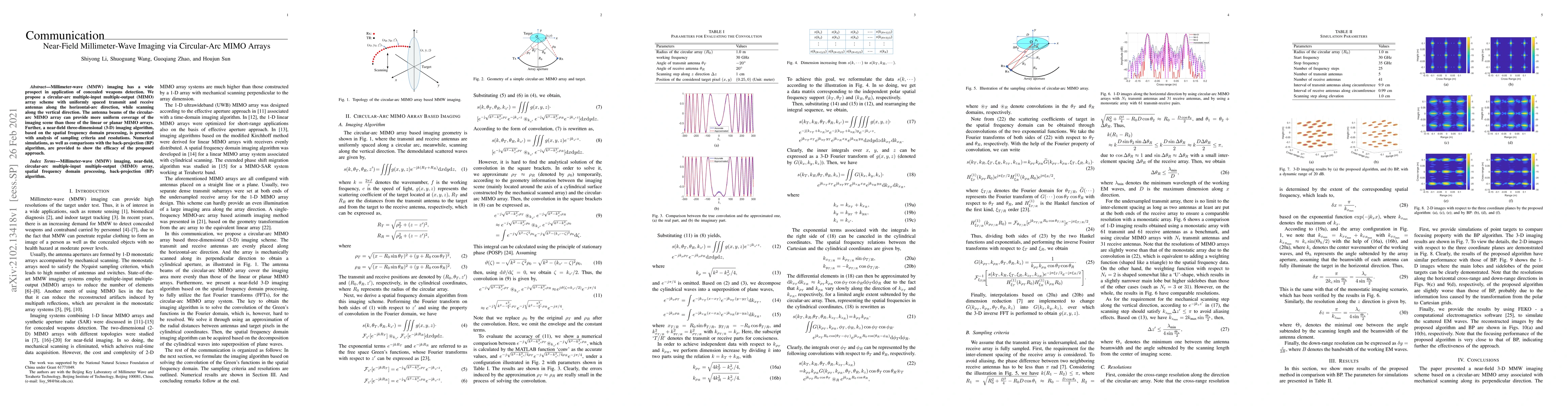 This paper proposes a circular-arc MIMO array for near-field millimeter-wave imaging, offering more uniform coverage compared to linear or planar arrays. It introduces a 3-D imaging algorithm based on spatial frequency domain processing, demonstrating its effectiveness through numerical simulations and comparisons with the back-projection algorithm.