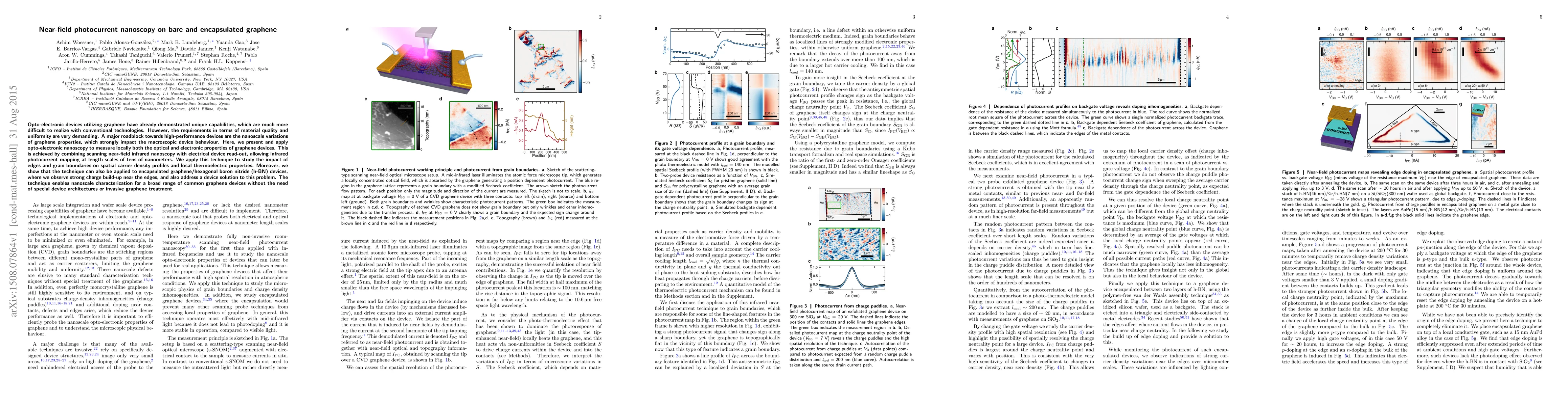 This paper introduces a novel opto-electronic nanoscopy technique combining scanning near-field infrared microscopy with electrical read-out to measure the nanoscale optical and electronic properties of graphene devices, revealing the impact of edges and grain boundaries. The method also applies to encapsulated graphene/h-BN devices, identifying charge build-up near edges and proposing a solution.