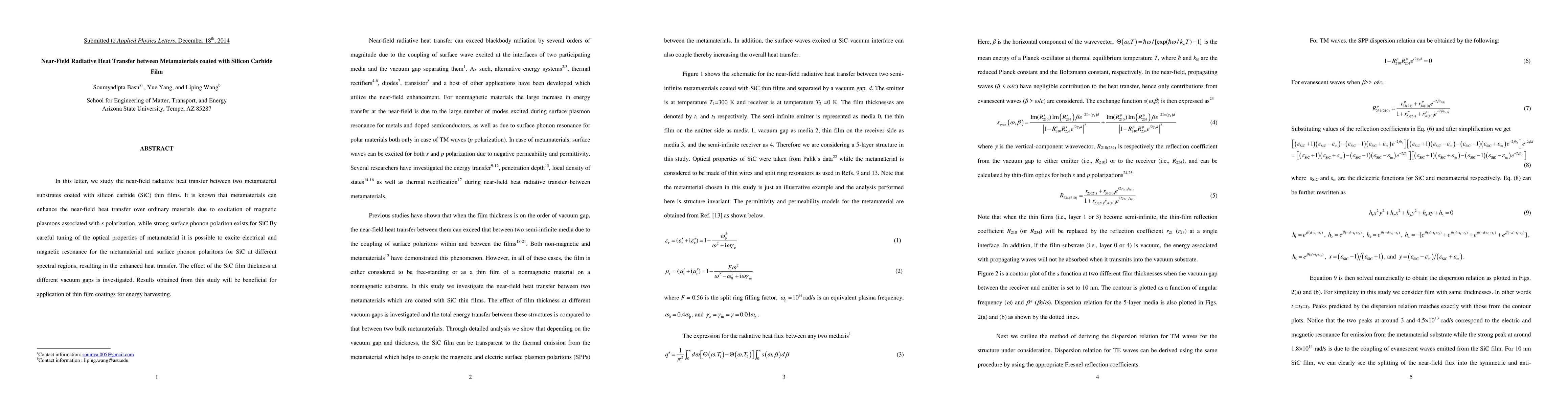 This study investigates the enhanced near-field radiative heat transfer between metamaterial substrates coated with silicon carbide films, revealing that tuning optical properties can excite resonances leading to increased heat transfer. The impact of varying silicon carbide film thickness and vacuum gap is analyzed, with potential applications for energy harvesting.