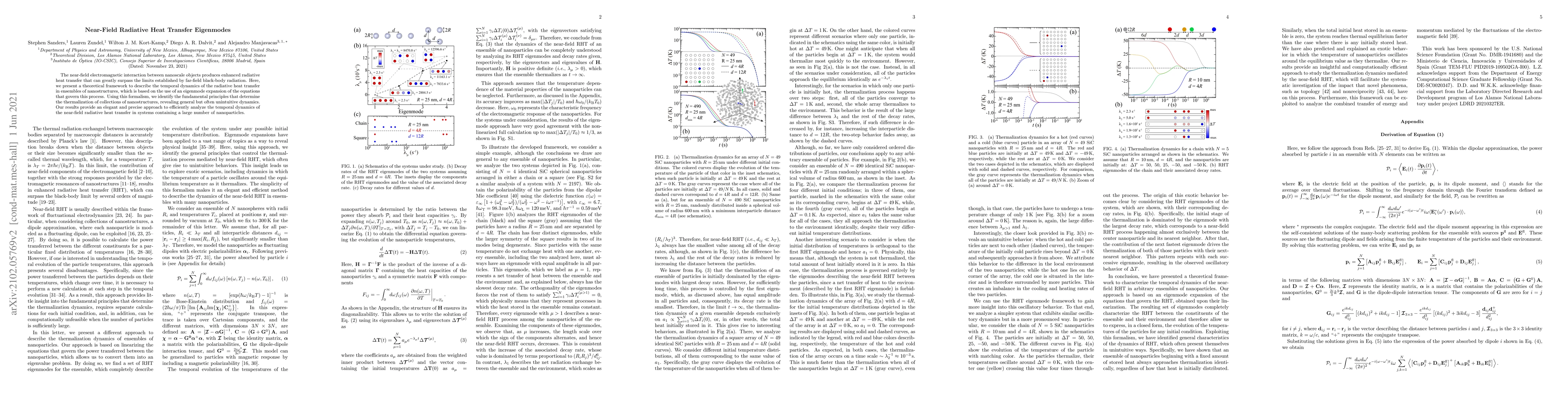 This paper introduces a theoretical framework for analyzing the temporal dynamics of enhanced near-field radiative heat transfer between nanostructures, using eigenmode expansion. The study reveals fundamental principles governing the thermalization in nanostructure ensembles, offering a precise method for understanding complex dynamics in nanoparticle systems.