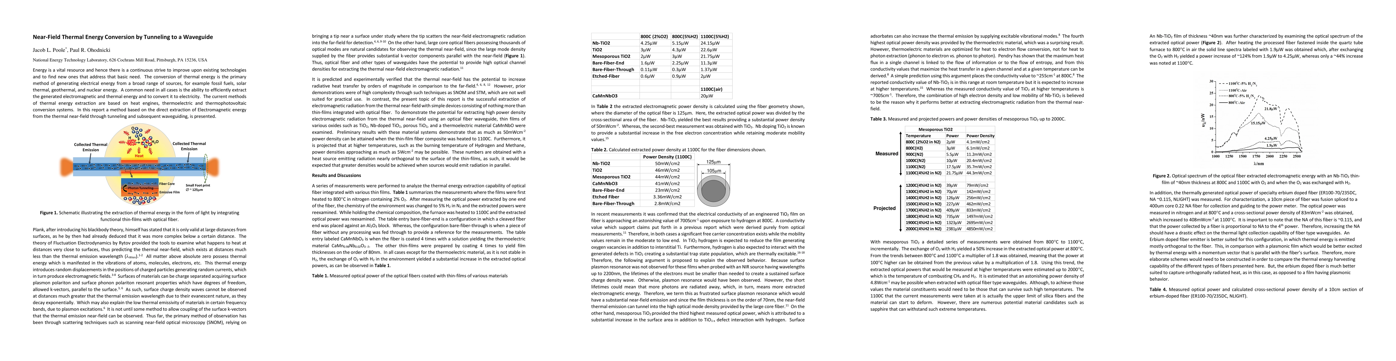 Energy is a vital resource and hence there is a continuous strive to improve upon existing technologies and to find new ones that address that basic need. The conversion of thermal energy is the primary method of generating electrical energy from a broad range of sources, for example fossil fuels, solar thermal, geothermal, and nuclear energy. A common need in all cases is the ability to efficiently extract the generated electromagnetic and thermal energy and to convert it to electricity. The current methods of thermal energy extraction are based on heat engines, thermoelectric and thermophotovoltaic conversion systems. In this report a method based on the direct extraction of Electromagnetic energy from the thermal near-field through tunneling and subsequent waveguiding, is presented.