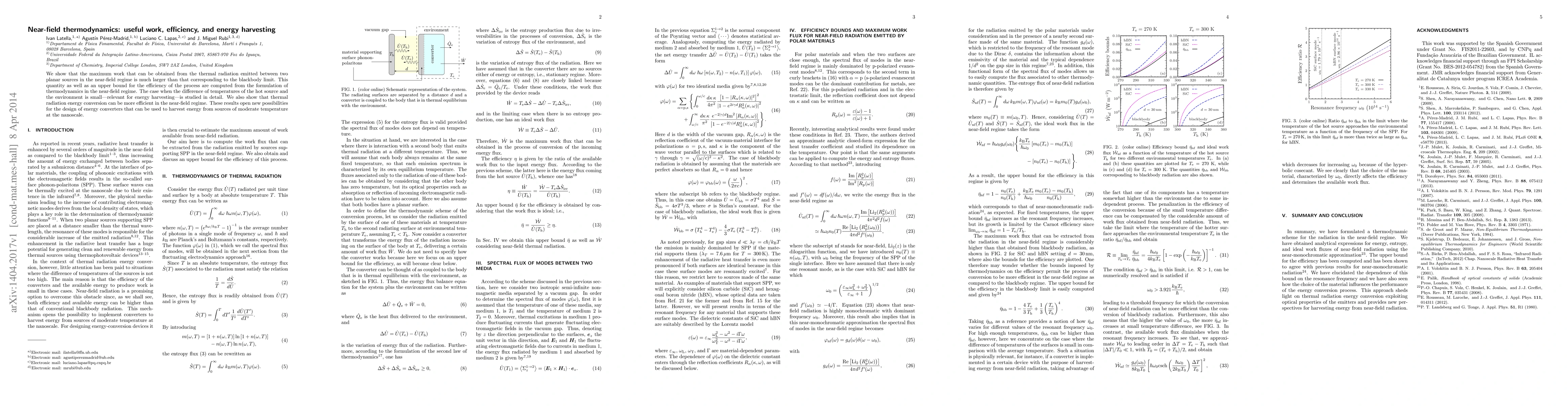 This paper demonstrates that near-field thermal radiation can yield significantly more useful work than the blackbody limit, with higher efficiency for energy harvesting. It explores the potential for nanoscale energy converters to harvest energy from moderate-temperature sources.