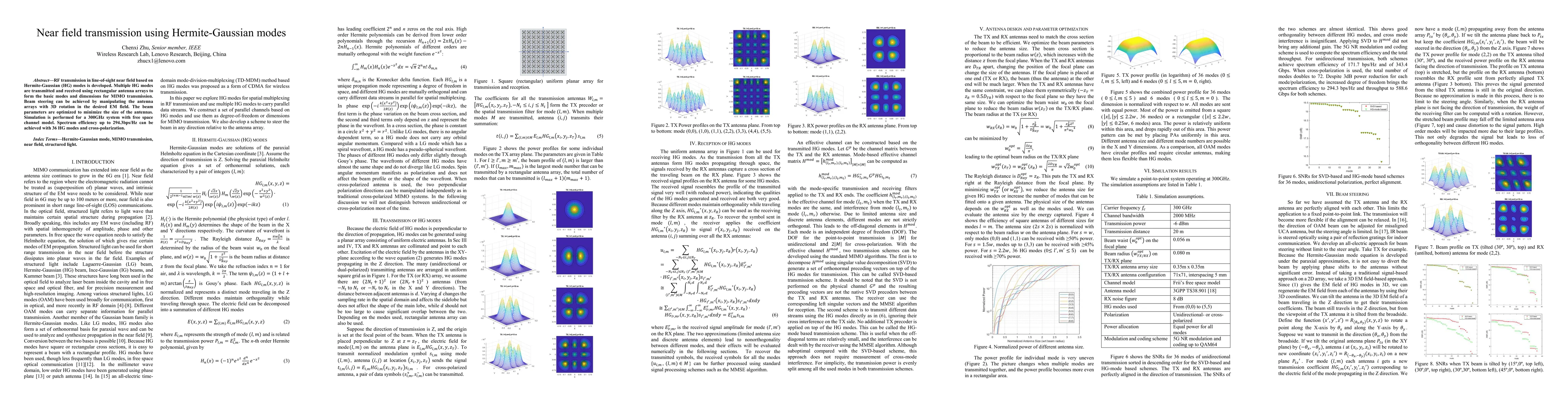 This work introduces the use of Hermite-Gaussian modes in near-field RF transmission, providing a new approach to beam steering and enhancing spectrum efficiency in MIMO systems.