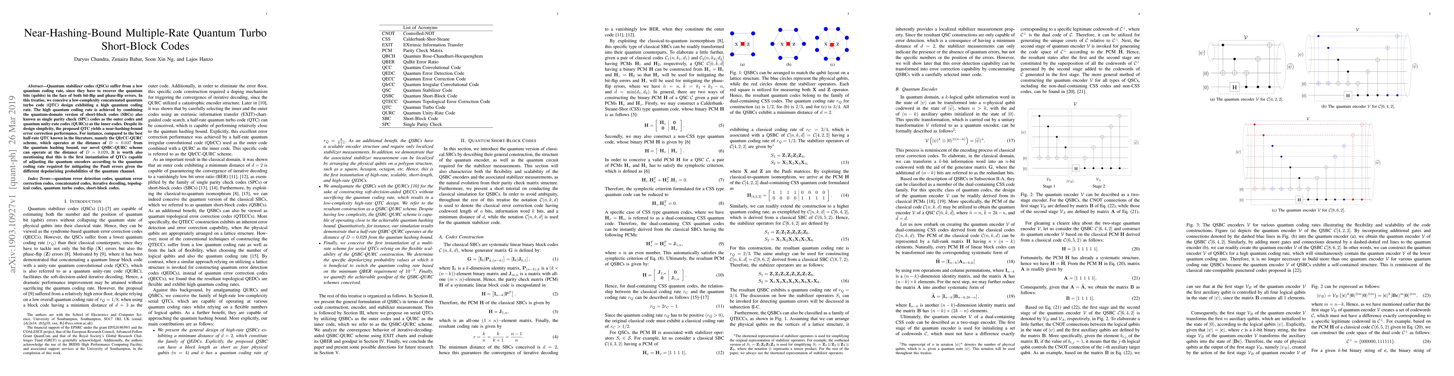 Quantum stabilizer codes (QSCs) suffer from a low quantum coding rate, since they have to recover the quantum bits (qubits) in the face of both bit-flip and phase-flip errors. In this treatise, we conceive a low-complexity concatenated quantum turbo code (QTC) design exhibiting a high quantum coding rate. The high quantum coding rate is achieved by combining the quantum-domain version of short-block codes (SBCs) also known as single parity check (SPC) codes as the outer codes and quantum unity-rate codes (QURCs) as the inner codes. Despite its design simplicity, the proposed QTC yields a near-hashing-bound error correction performance. For instance, compared to the best half-rate QTC known in the literature, namely the QIrCC-QURC scheme, which operates at the distance of $D = 0.037$ from the quantum hashing bound, our novel QSBC-QURC scheme can operate at the distance of $D = 0.029$. It is worth also mentioning that this is the first instantiation of QTCs capable of adjusting the quantum encoders according to the quantum coding rate required for mitigating the Pauli errors given the different depolarizing probabilities of the quantum channel.