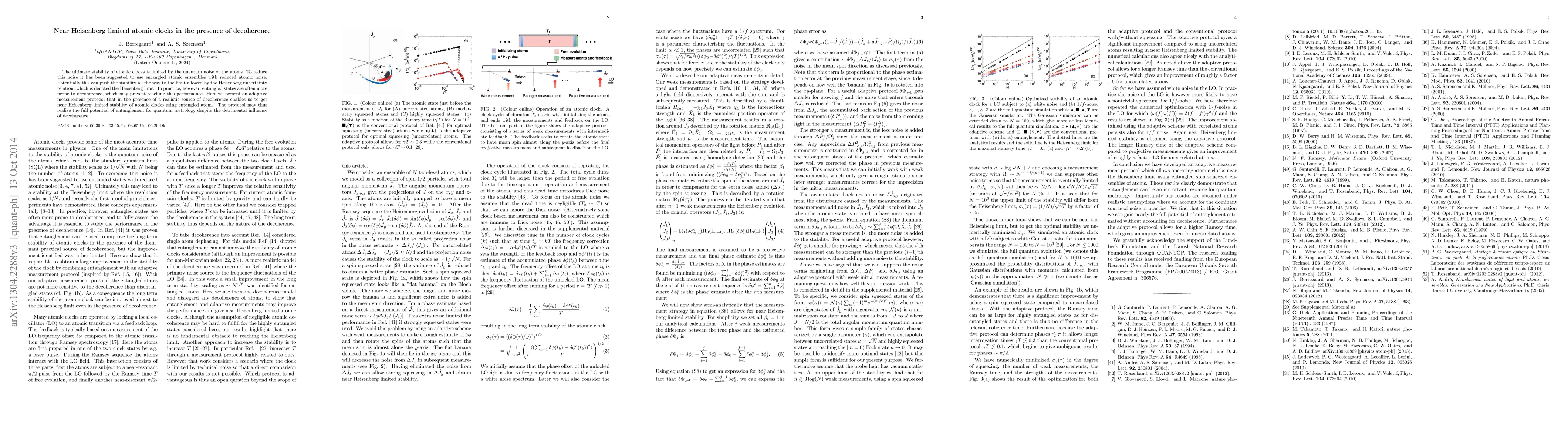 This paper proposes an adaptive measurement protocol to achieve near Heisenberg limited stability in atomic clocks, leveraging entangled atomic ensembles to mitigate quantum noise. Despite the challenges posed by decoherence, the protocol enables the use of entanglement for quantum metrology, realizing its full potential.