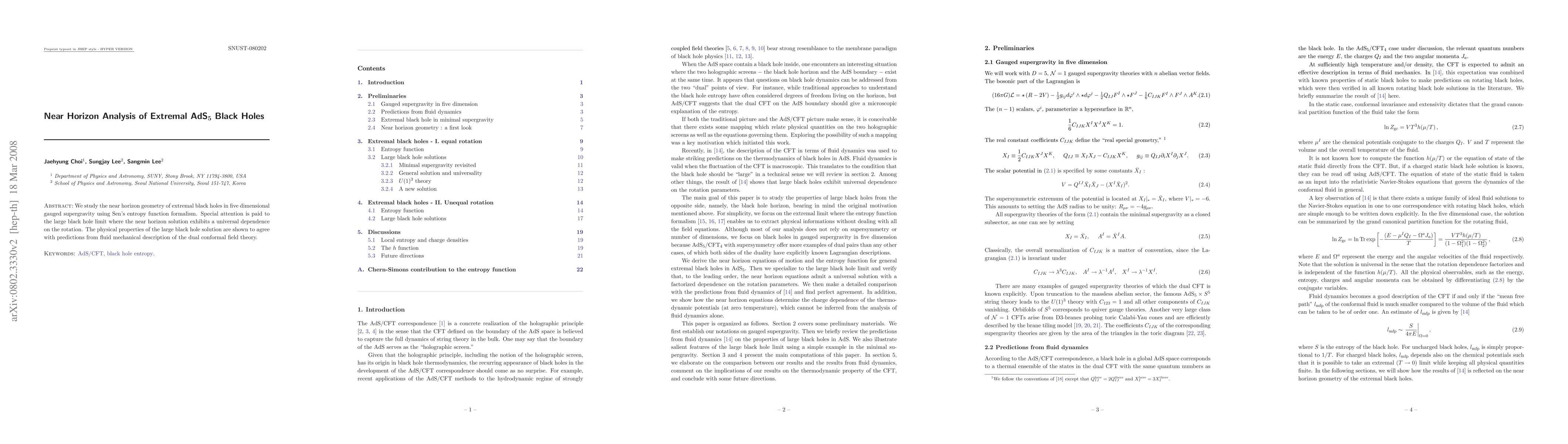 This research investigates the near horizon geometry of extremal AdS5 black holes in five-dimensional gauged supergravity, revealing a universal rotation dependence in the large black hole limit. The findings align with fluid mechanical predictions from the dual conformal field theory.