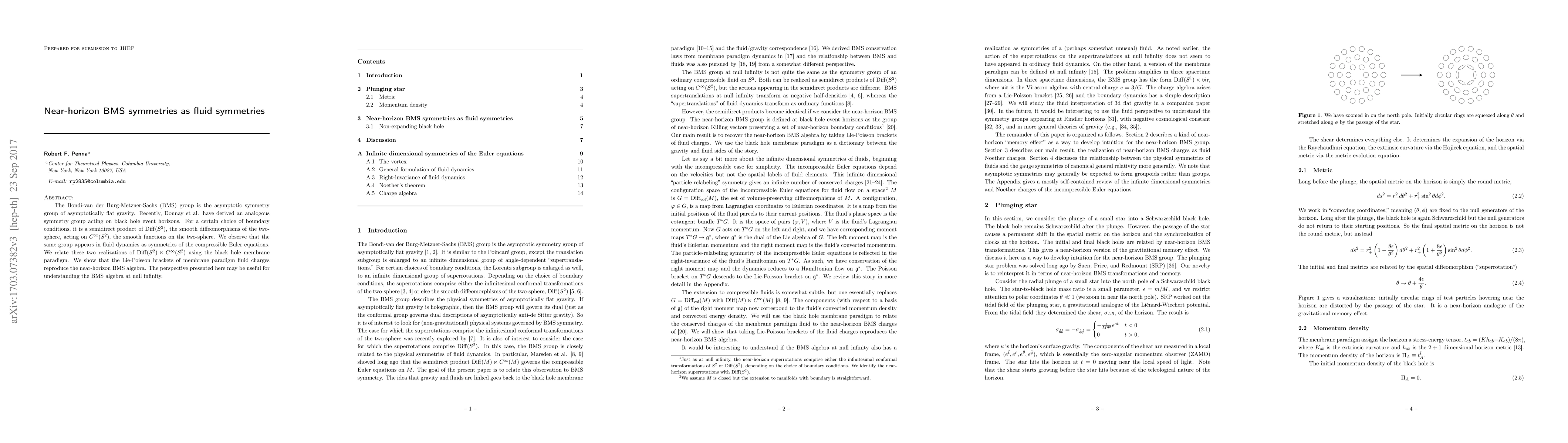 This paper establishes a connection between near-horizon BMS symmetries in black hole physics and fluid symmetries in compressible Euler equations, demonstrating that the same group structure appears in both contexts via the black hole membrane paradigm. The Lie-Poisson brackets of fluid charges in this paradigm reproduce the near-horizon BMS algebra, offering insights into BMS symmetries at null infinity.