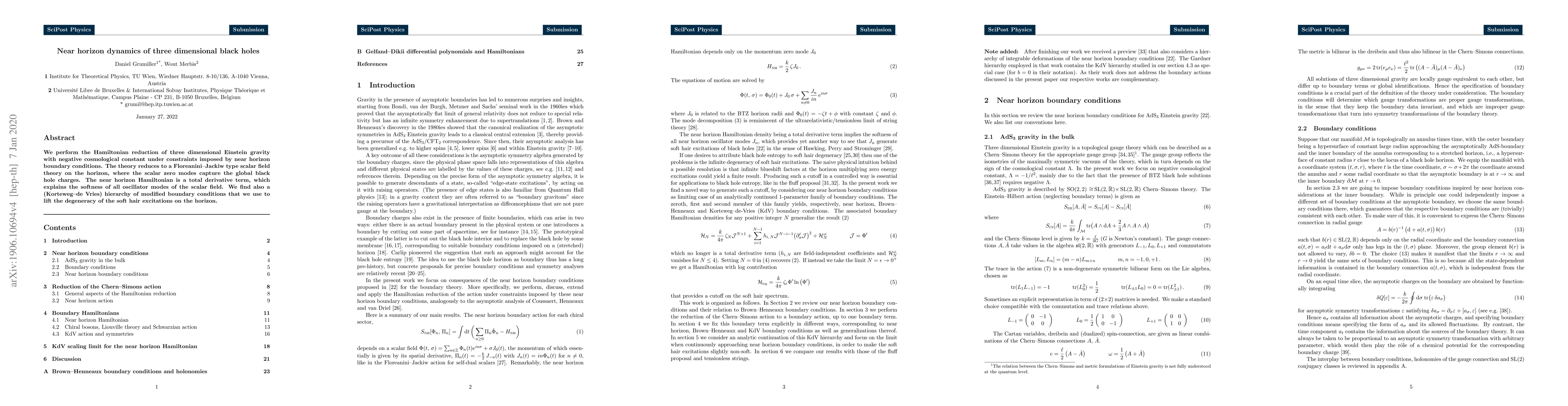This paper investigates the dynamics of three-dimensional black holes near their horizons, showing they reduce to a scalar field theory. The study reveals the Hamiltonian is a total derivative, explaining the softness of scalar field modes and introduces a modified boundary condition hierarchy to distinguish black hole excitations.