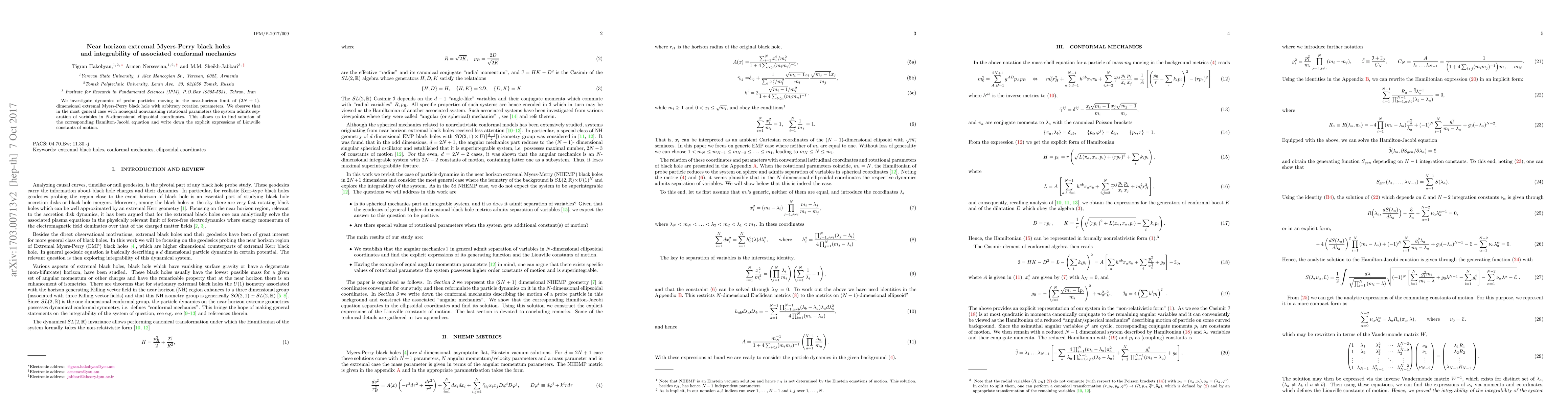 This paper studies probe particle dynamics in the near-horizon region of (2N+1)-dimensional extremal Myers-Perry black holes, revealing integrability via separation of variables in ellipsoidal coordinates, leading to explicit Liouville constants of motion.