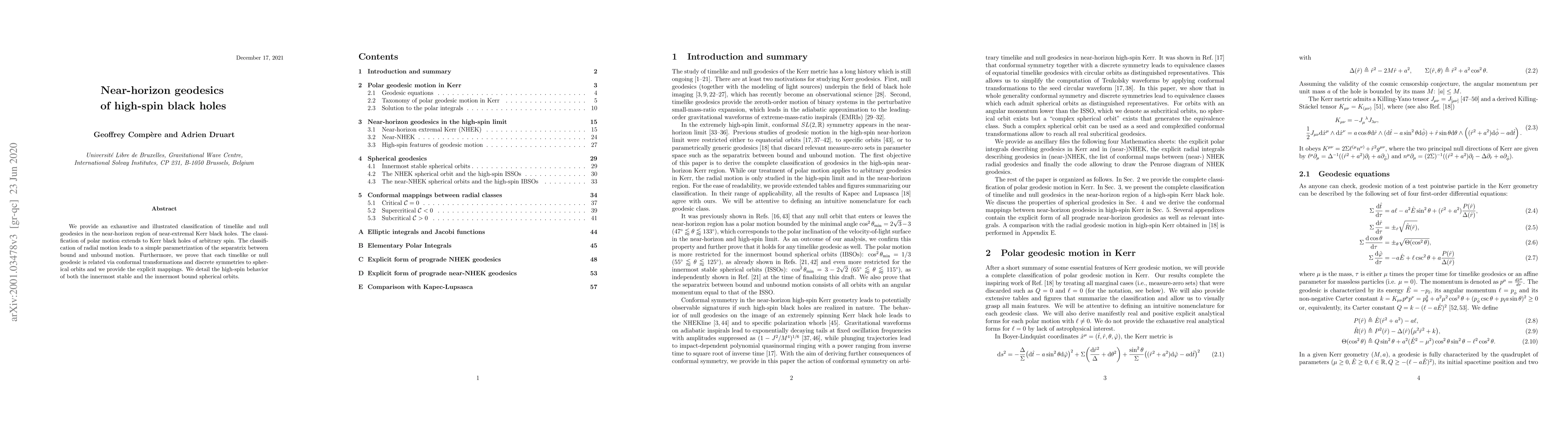 This paper classifies timelike and null geodesics in the near-horizon region of high-spin Kerr black holes, showing that polar and radial motions can be parametrized and related to spherical orbits via conformal transformations. It also explores the high-spin behavior of stable and bound orbits.