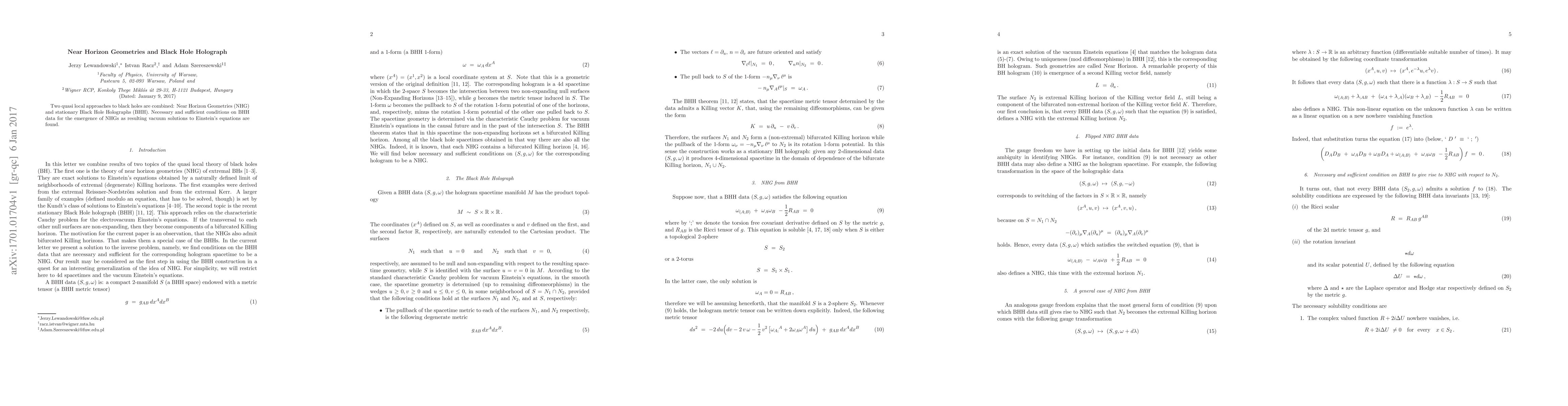 This paper combines Near Horizon Geometries (NHG) and stationary Black Hole Holographs (BHH) to identify the conditions under which NHGs emerge as vacuum solutions from BHH data, providing insights into black hole physics.