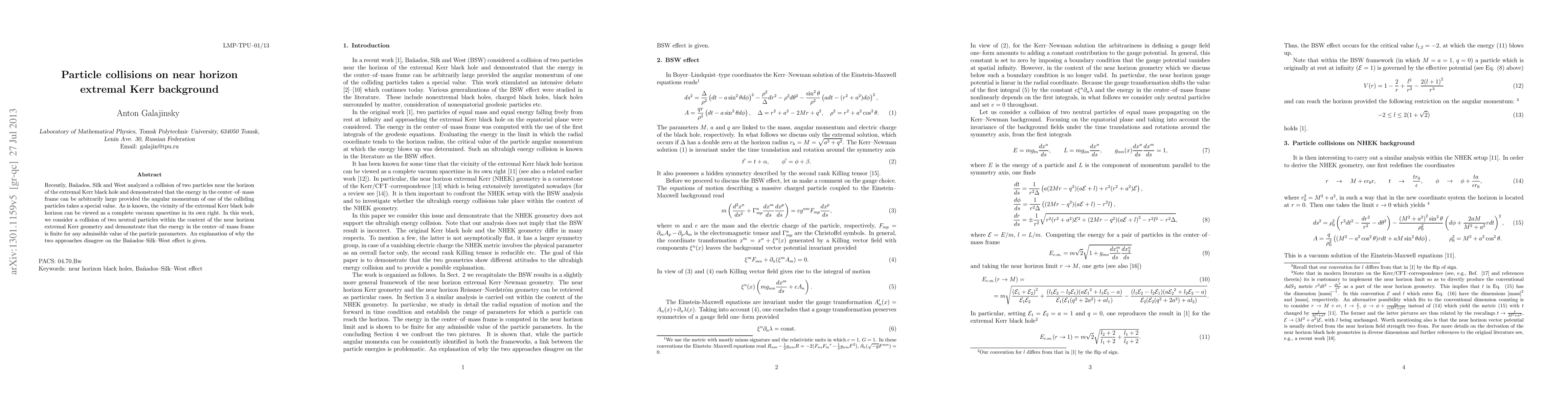 This paper examines the collision of two neutral particles near the horizon of an extremal Kerr black hole, showing that the center-of-mass energy remains finite for all admissible parameters, contrasting with the Banados-Silk-West effect which suggests arbitrarily large energy under specific conditions. The discrepancy is explained through the different geometries considered in each analysis.