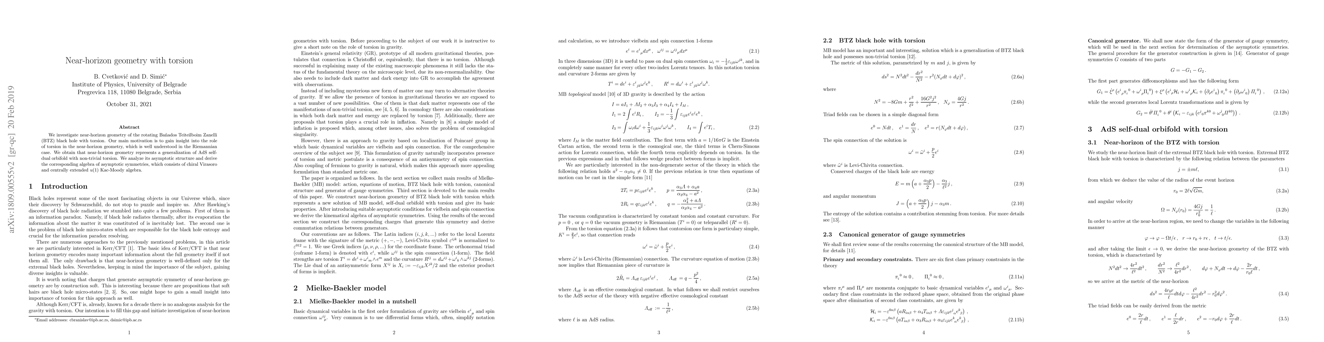 This paper explores the near-horizon geometry of rotating BTZ black holes with torsion, revealing a generalization of AdS self-dual orbifold with non-trivial torsion. The study derives the algebra of asymptotic symmetries, consisting of chiral Virasoro and centrally extended $u(1)$ Kac-Moody algebra.