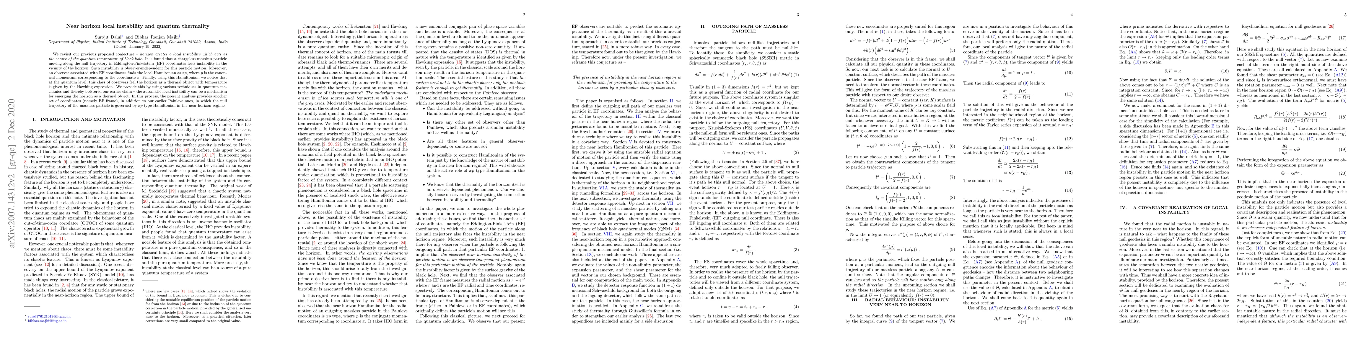 This paper revisits the conjecture that black hole horizons create a local instability leading to quantum temperature, showing that a chargeless massless particle in Eddington-Finkelstein coordinates experiences this instability near the horizon. The analysis confirms that this instability manifests as thermality with a temperature described by the Hawking expression, reinforcing the idea that local instability is a mechanism for horizon thermality.