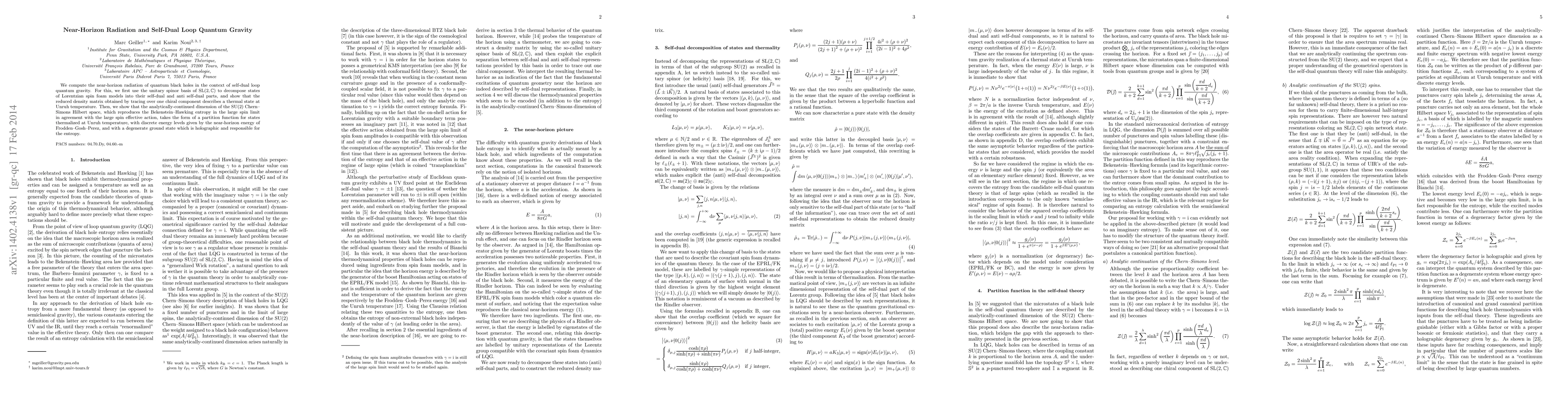 We compute the near-horizon radiation of quantum black holes in the context of self-dual loop quantum gravity. For this, we first use the unitary spinor basis of $\text{SL}(2,\mathbb{C})$ to decompose states of Lorentzian spin foam models into their self-dual and anti self-dual parts, and show that the reduced density matrix obtained by tracing over one chiral component describes a thermal state at Unruh temperature. Then, we show that the analytically-continued dimension of the $\text{SU}(2)$ Chern-Simons Hilbert space, which reproduces the Bekenstein-Hawking entropy in the large spin limit in agreement with the large spin effective action, takes the form of a partition function for states thermalized at Unruh temperature, with discrete energy levels given by the near-horizon energy of Frodden-Gosh-Perez, and with a degenerate ground state which is holographic and responsible for the entropy.