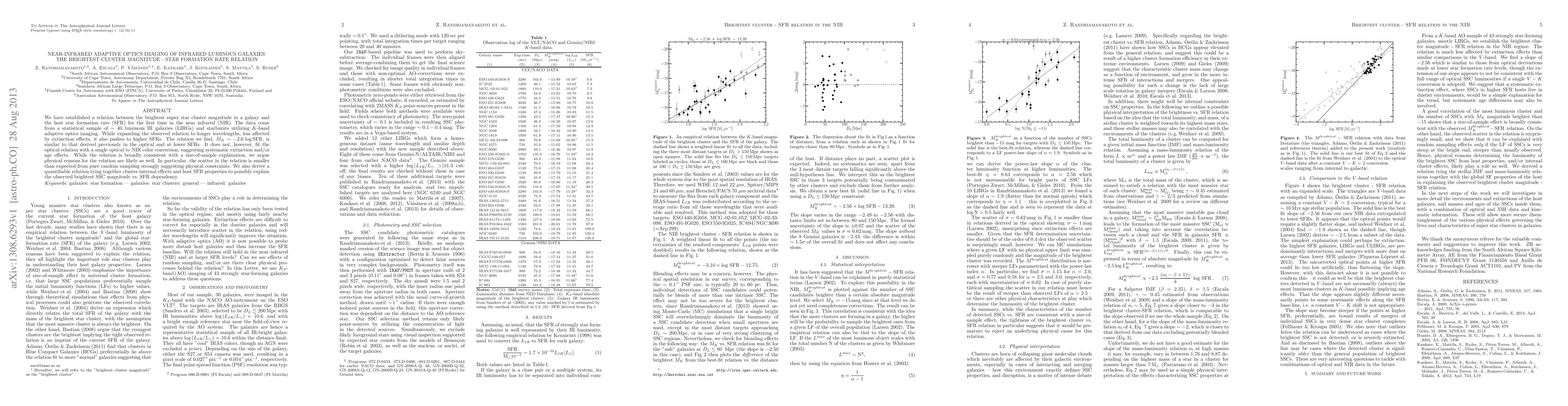 This study establishes a new near-infrared (NIR) relation between the brightest super star cluster magnitude and the star formation rate (SFR) in luminous infrared galaxies (LIRGs), suggesting physical constraints beyond random sampling. The derived relation, M_K ~ - 2.6 log SFR, extends the existing optical relation to higher SFRs and indicates systematic extinction and/or age effects.