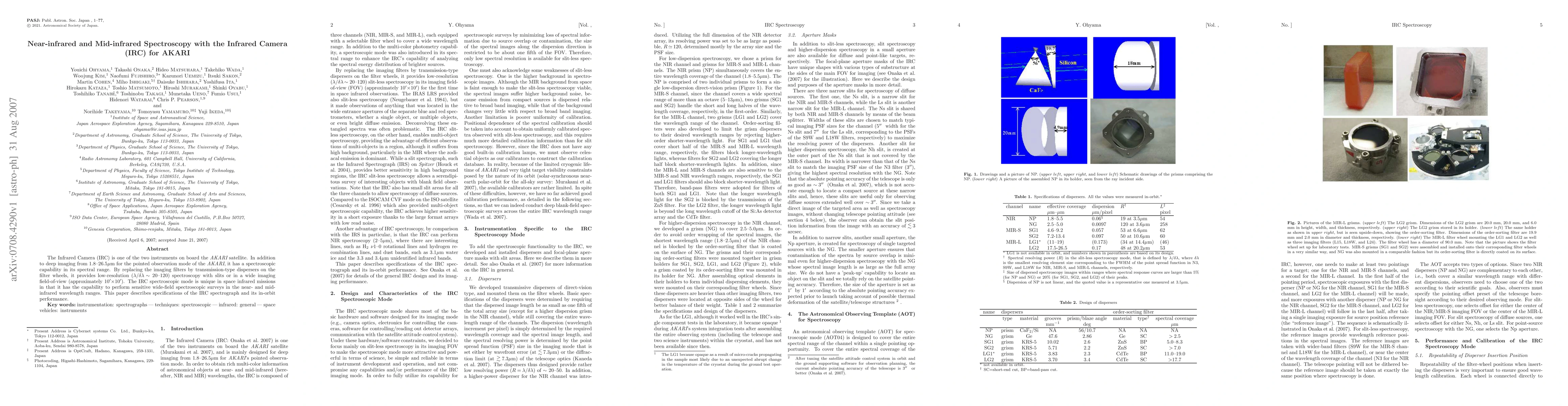 This paper details the Infrared Camera (IRC) on the AKARI satellite, which offers low-resolution spectroscopy in the near- to mid-infrared range by replacing imaging filters with transmission-type dispersers. It highlights the IRC's unique capability for wide-field spectroscopic surveys in space.