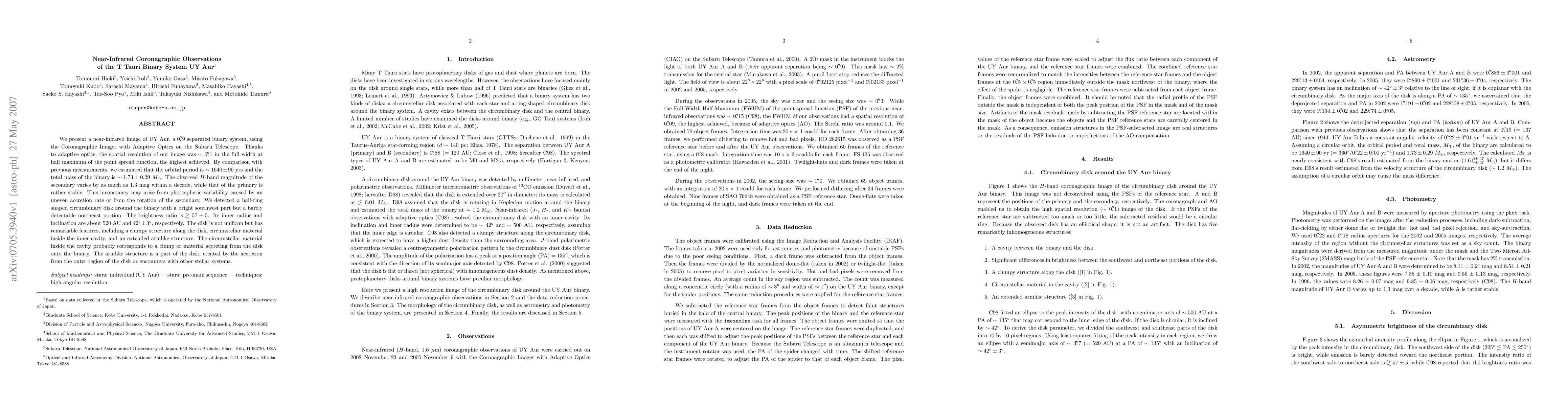 This research paper uses a powerful telescope to observe the binary system UY Aur in near-infrared light, revealing details about its orbit, mass, and surrounding disk, which includes a clumpy structure and circumstellar material.