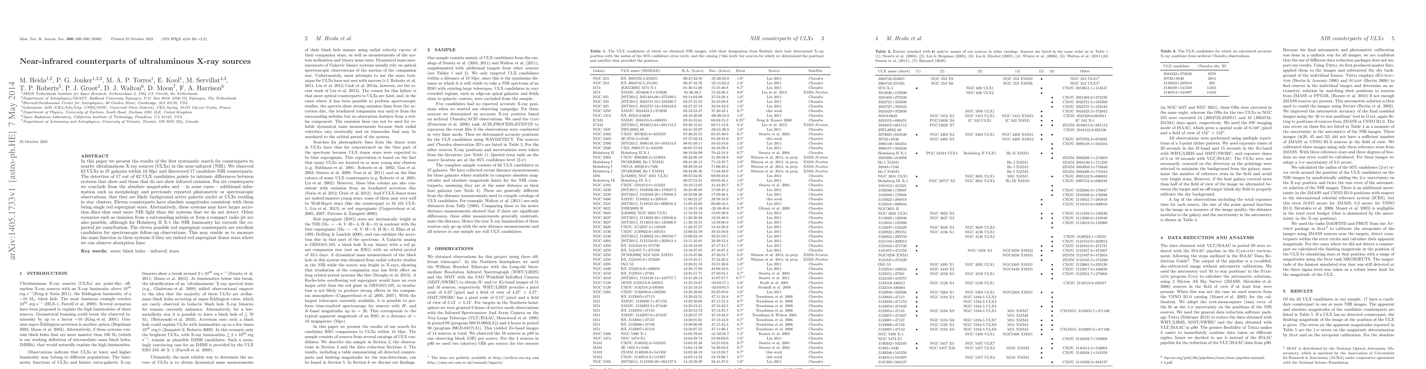 This paper reports the first systematic search for near-infrared counterparts to nearby ultraluminous X-ray sources (ULXs), identifying 17 candidates out of 62 observed. The study suggests intrinsic differences between ULXs that emit NIR light and those that do not, with six counterparts likely being background AGNs or ULXs in star clusters, and eleven possibly being single red supergiant stars.