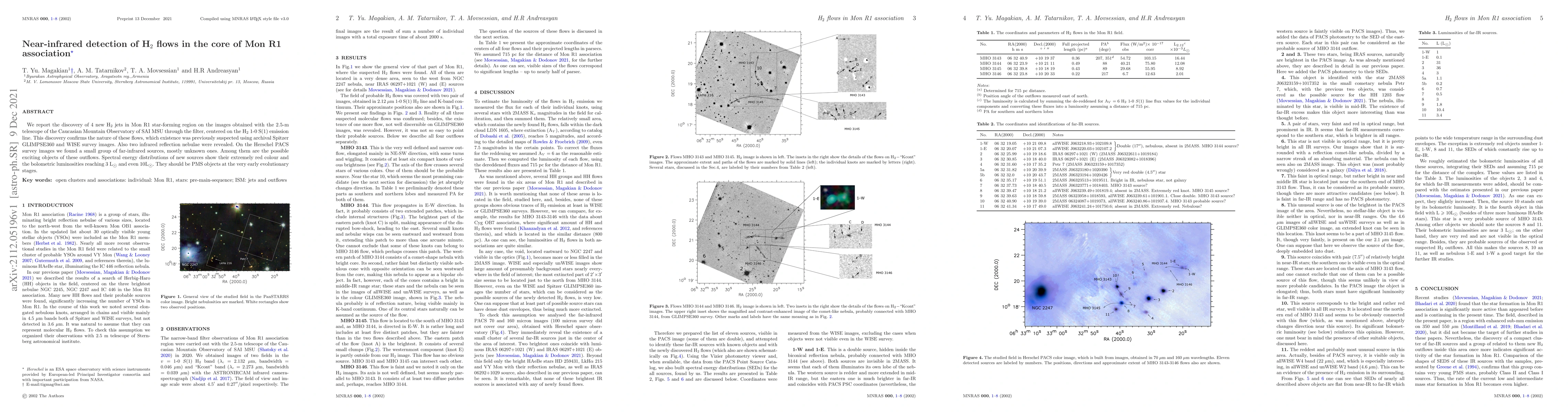 New H2 jets discovered in Mon R1 star-forming region using near-infrared detection, confirming previous suspicions from Spitzer and WISE surveys. Small group of far-infrared sources, likely young, luminous pre-main sequence objects, found on Herschel PACS images.
