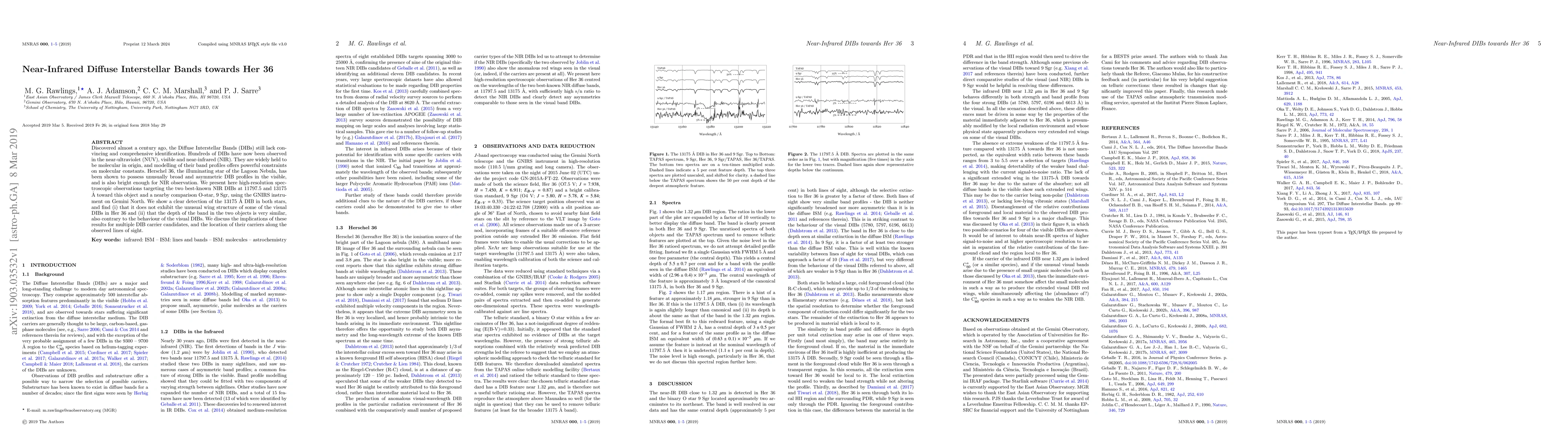 Discovered almost a century ago, the Diffuse Interstellar Bands (DIBs) still lack convincing and comprehensive identification. Hundreds of DIBs have now been observed in the near-ultraviolet (NUV), visible and near-infrared (NIR). They are widely held to be molecular in origin, and modelling of their band profiles offers powerful constraints on molecular constants. Herschel 36, the illuminating star of the Lagoon Nebula, has been shown to possess unusually broad and asymmetric DIB profiles in the visible, and is also bright enough for NIR observation. We present here high-resolution spectroscopic observations targeting the two best-known NIR DIBs at 11797.5 and 13175 A toward this object and a nearby comparison O-star, 9 Sgr, using the GNIRS instrument on Gemini North. We show a clear detection of the 13175 A DIB in both stars, and find (i) that it does not exhibit the unusual wing structure of some of the visual DIBs in Her 36 and (ii) that the depth of the band in the two objects is very similar, also contrary to the behaviour of the visual DIBs. We discuss the implications of these results for multiple DIB carrier candidates, and the location of their carriers along the observed lines of sight.