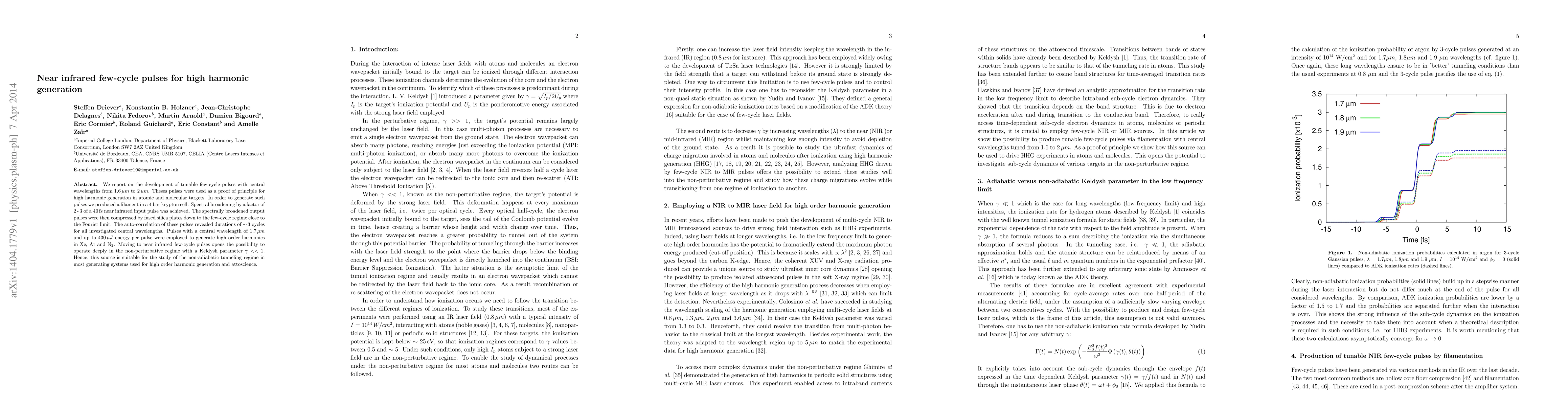 This paper details the development of tunable few-cycle near-infrared pulses for high harmonic generation, achieving spectral broadening and compression to generate pulses with durations around 3 cycles. These pulses enable high-order harmonic generation in gases, opening new avenues for studying the non-adiabatic tunneling regime in attosecond science.