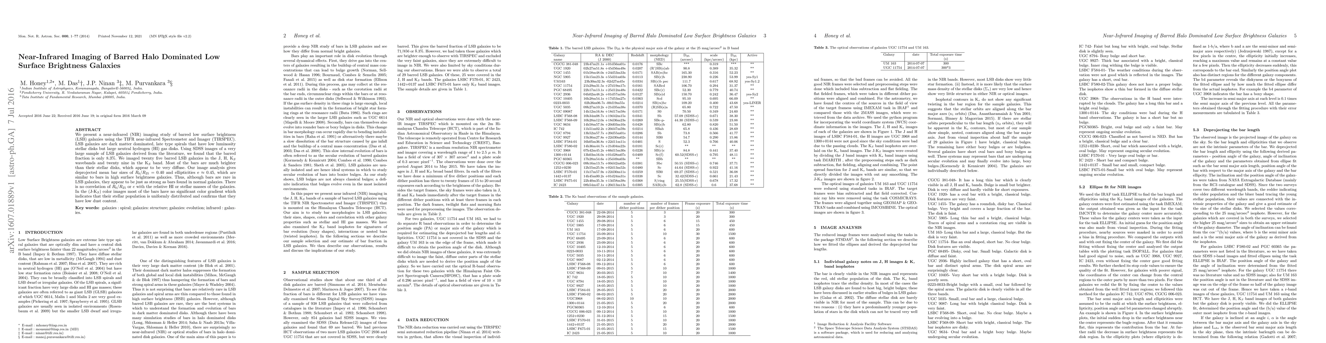 This paper presents a near-infrared imaging study of barred low surface brightness galaxies using the TIRSPEC instrument, revealing that bars are rare (8.3%) but comparable in size and ellipticity to those in high surface brightness galaxies. The bars exhibit uniform stellar populations and low dust content, indicating no significant correlation with the galaxies' gas or stellar masses.